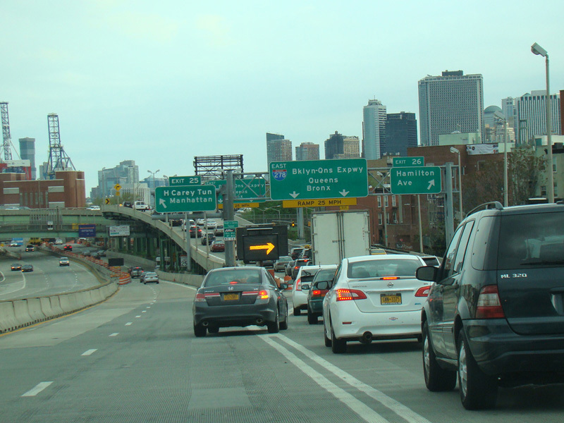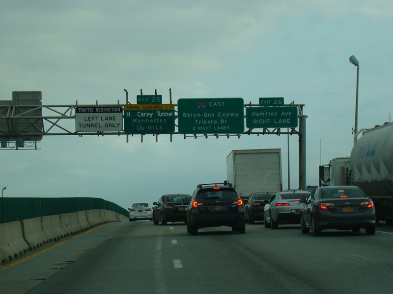 Exit 25 is for the Hugh L. Carey Tunnel (I-478). Exit 26 is for Hamilton Avenue.