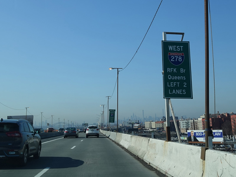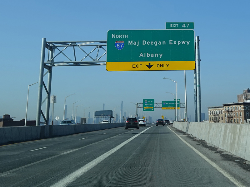 Exit 48 is for East 138 Street. Exit 47 is for the Major Deegan Expressway (I-87). The Bruckner Expressway ends here. Bear left to stay on I-278 across the RFK Bridge.