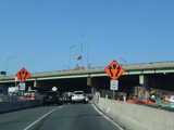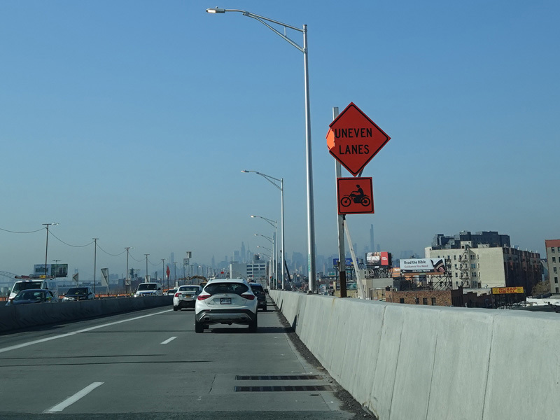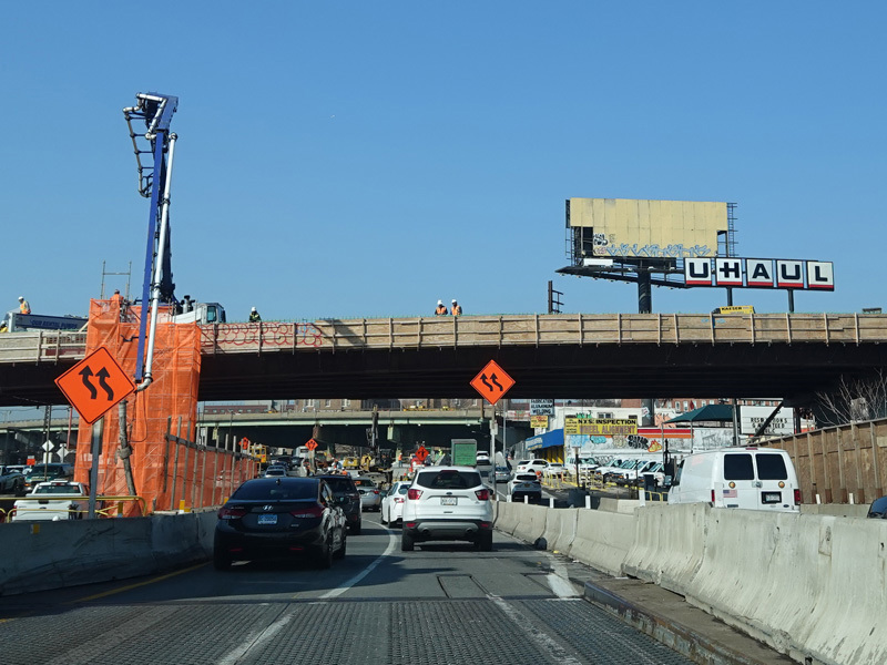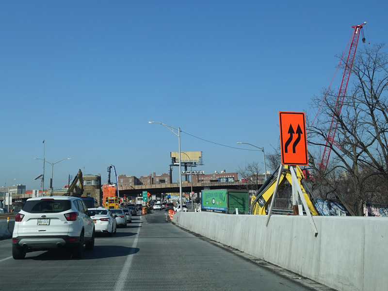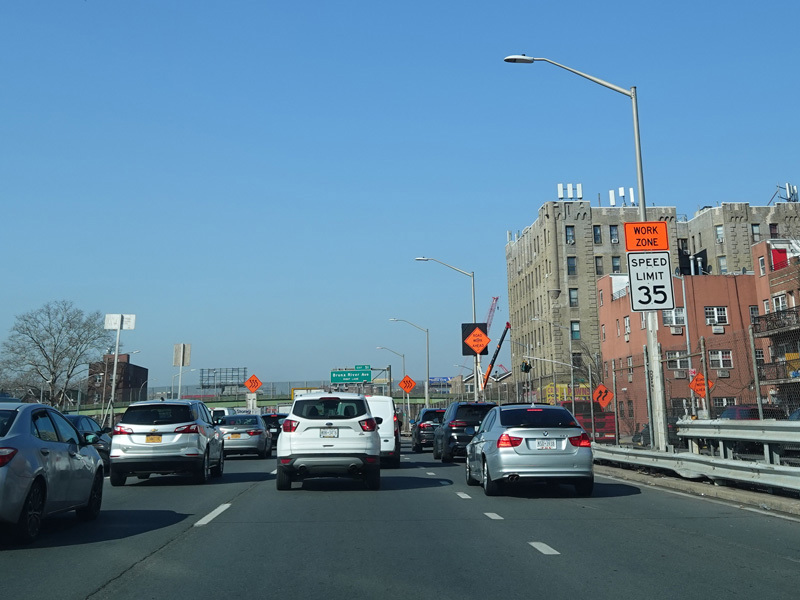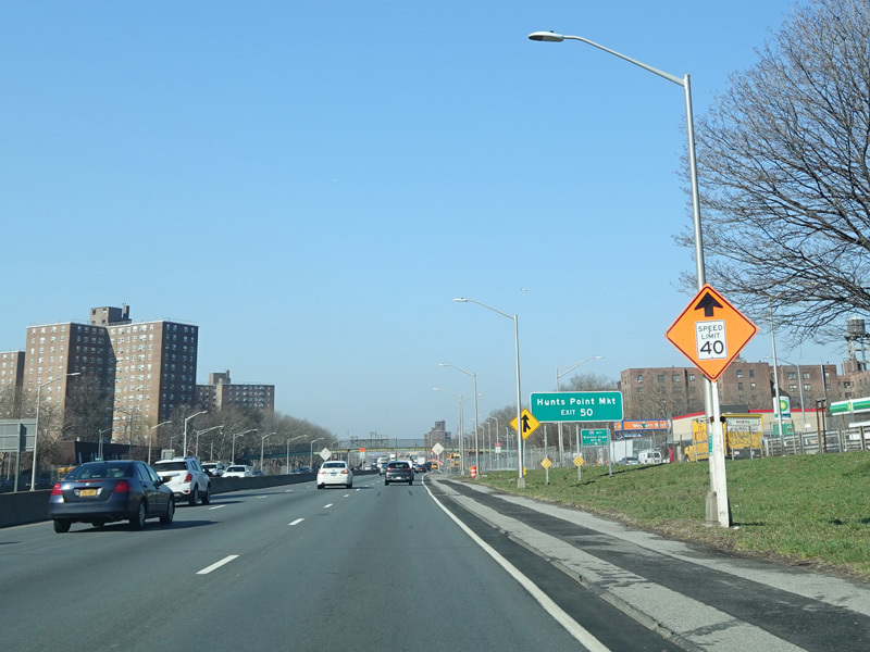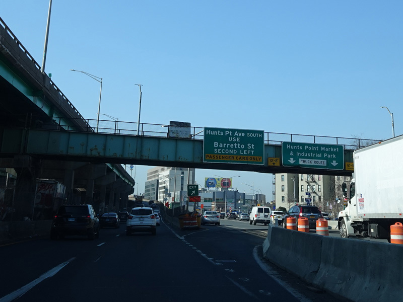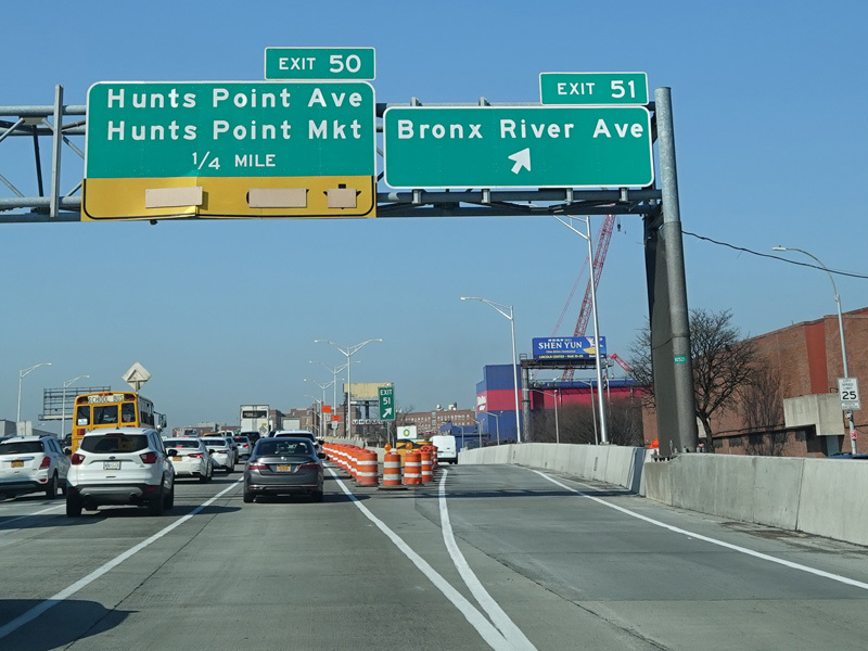 Exit 50 is for Hunts Point Avenue. There is currently construction on the bridge over the Bronx River ahead, so all vehicles are forced to exit here and follow Bruckner Boulevard to bypass it.