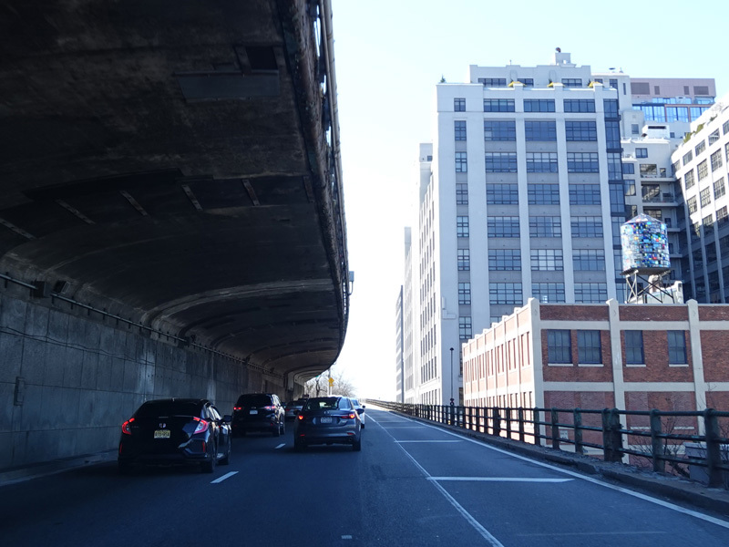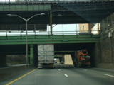 The Brooklyn-Queens Expressway is double-decked between exit 28 and exit 27. The westbound lanes run under the eastbound lanes.