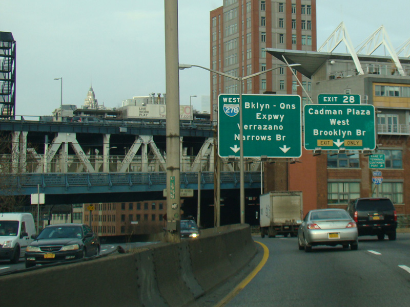 Exit 28 is for Cadman Plaza West and the Brooklyn Bridge.