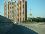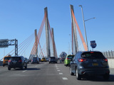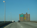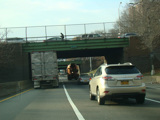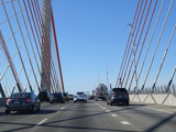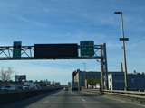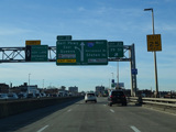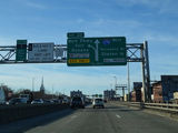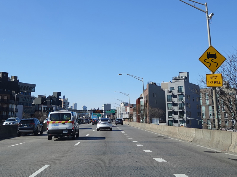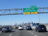 The Kosciuszko Bridge is a cable-stayed bridge across Newtown Creek from Queens to Brooklyn. Exit 34 is for Meeker Avenue and Vandervoort Avenue.