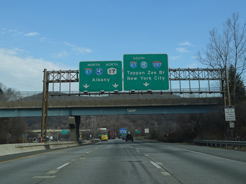 I-287 is multiplexed with I-87 south along the New York Thruway through Rockland County and across the Governor Mario M. Cuomo Bridge over the Hudson River to Westchester County.