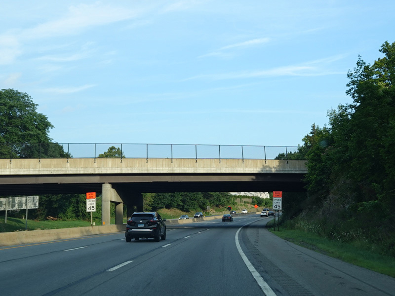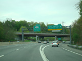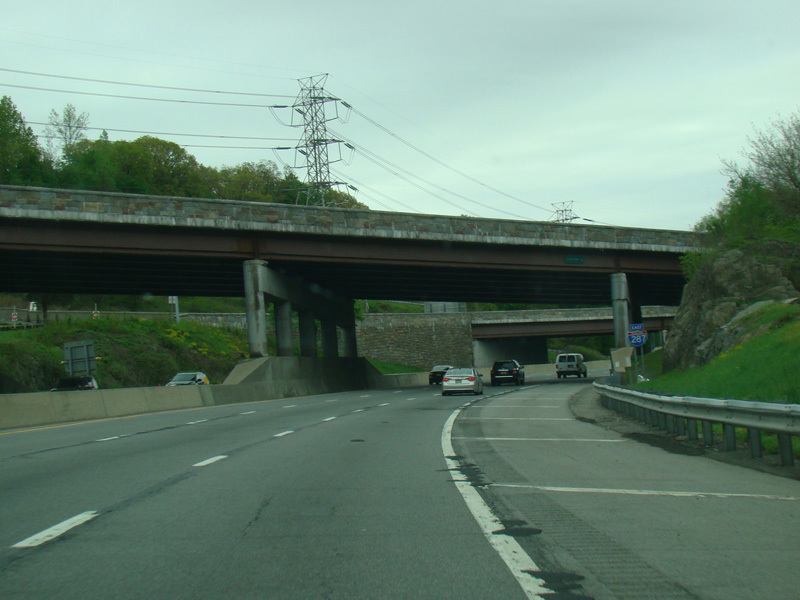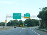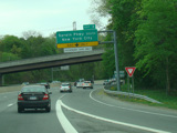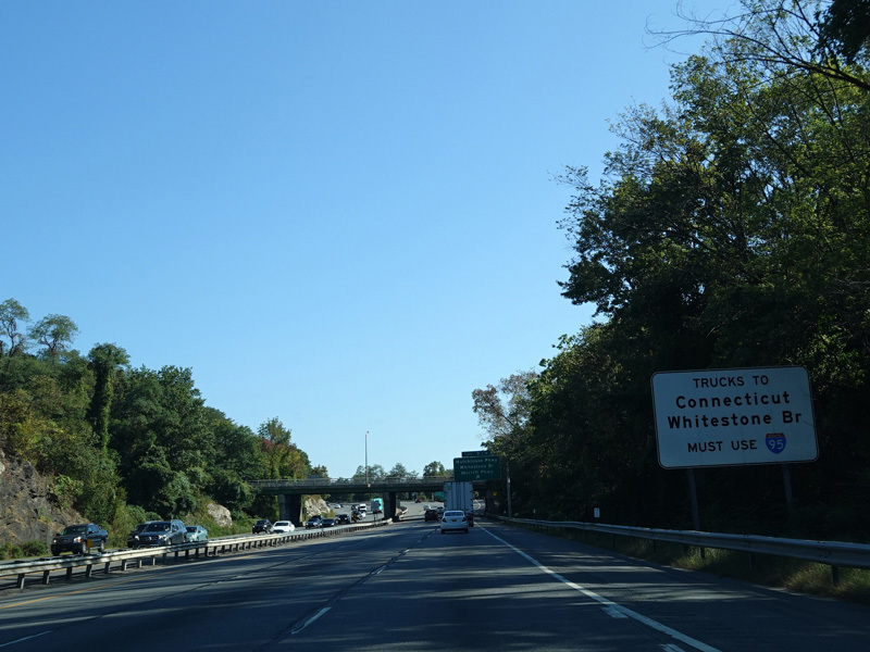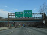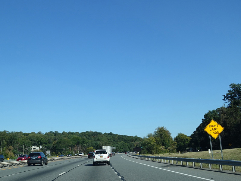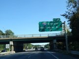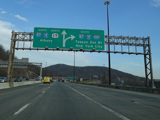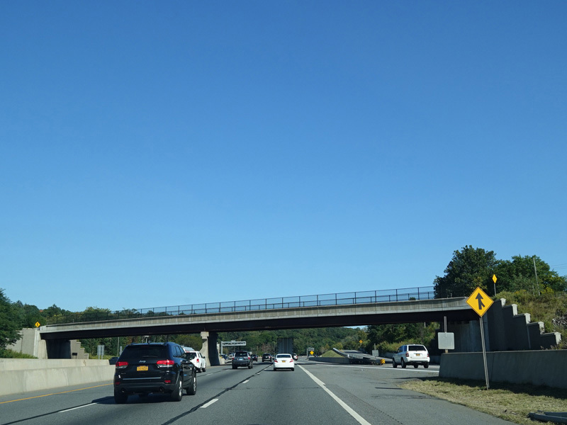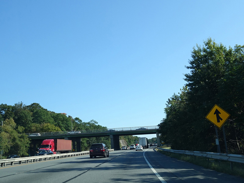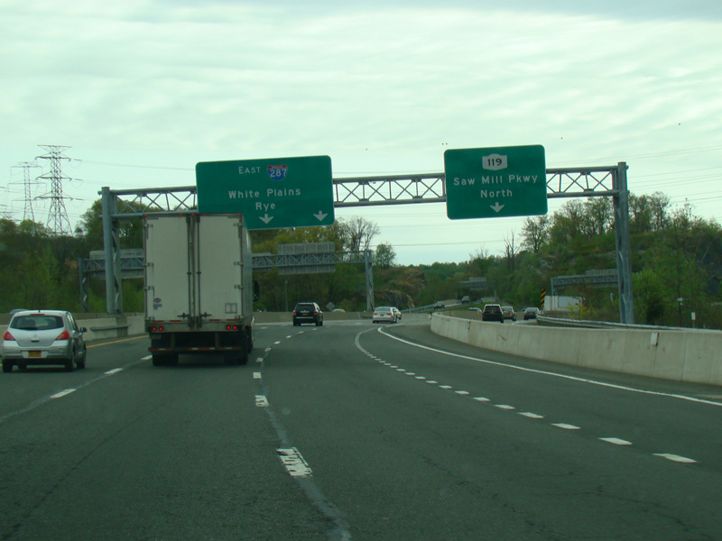 On the other side of the bridge, the two routes split. The New York Thruway (I-87) curves south toward New York City, while I-287 continues east as the Cross Westchester Expressway. Exit 3 is for the Sprain Parkway south.