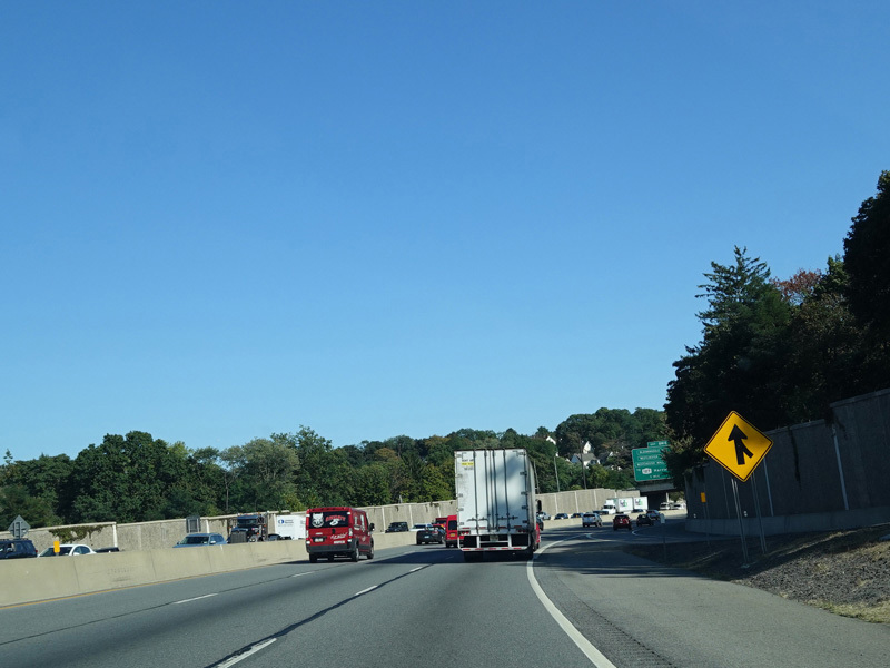 I-287 ends here. Exit 11 is for Boston Post Road (US 1). Exit 12 is for the New England Thruway (I-95) south. After exit 12, I-287 becomes a ramp to the New England Thruway (I-95) north. The ramp merges into I-95 just before the Connecticut border, where it becomes the Connecticut Turnpike.