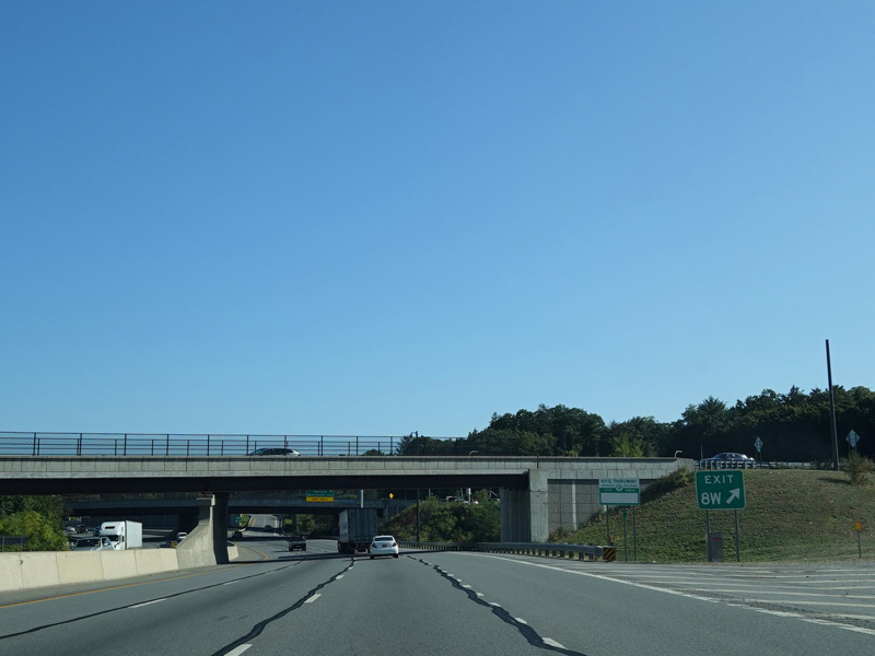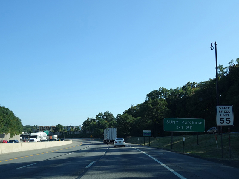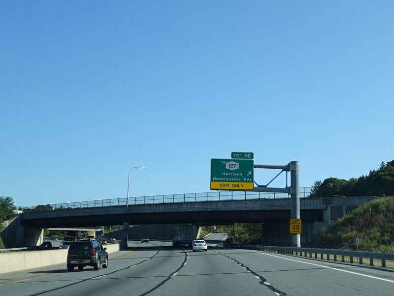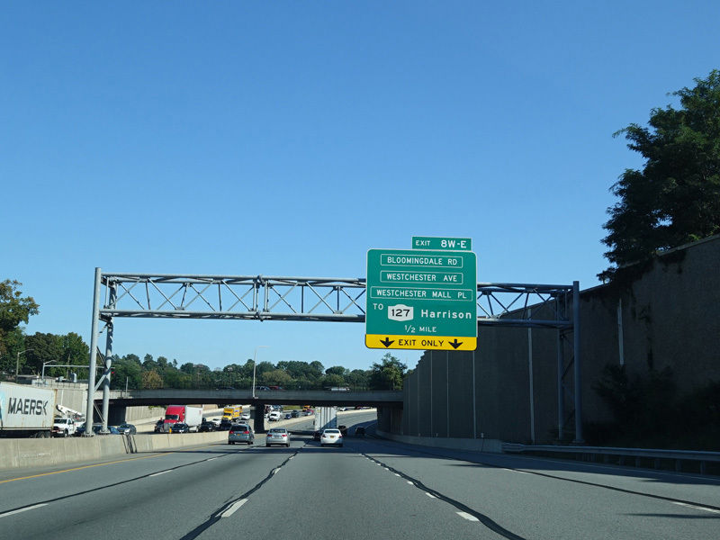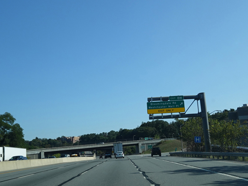 Exit 8W is for Bloomingdale Road and Westchester Mall Place. Exit 8E is for North Street (NY 127) and Westchester Avenue (CR 62).