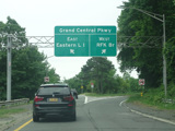 The ramp for exit 1 when travelling north splits. Bear right to go east on the Grand Central Parkway. Bear left to go west.