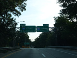The ramp for exits 4E-W when travelling south splits. Bear left to go east on the Long Island Expressway (I-495). Bear right to go west.