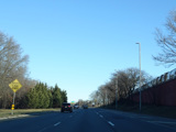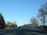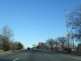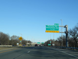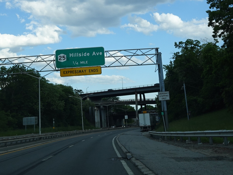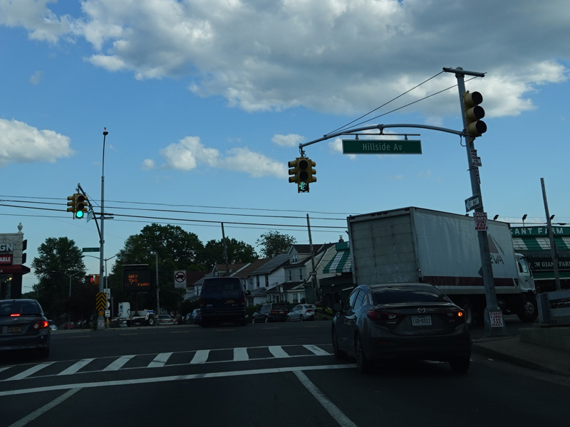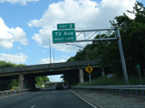 The Clearview Expressway ends here at a traffic light at Hillside Avenue (NY 25). Hollis Court Boulevard (NY 24) begins straight ahead. The NY 24 designation is not signed along this westernmost segment.