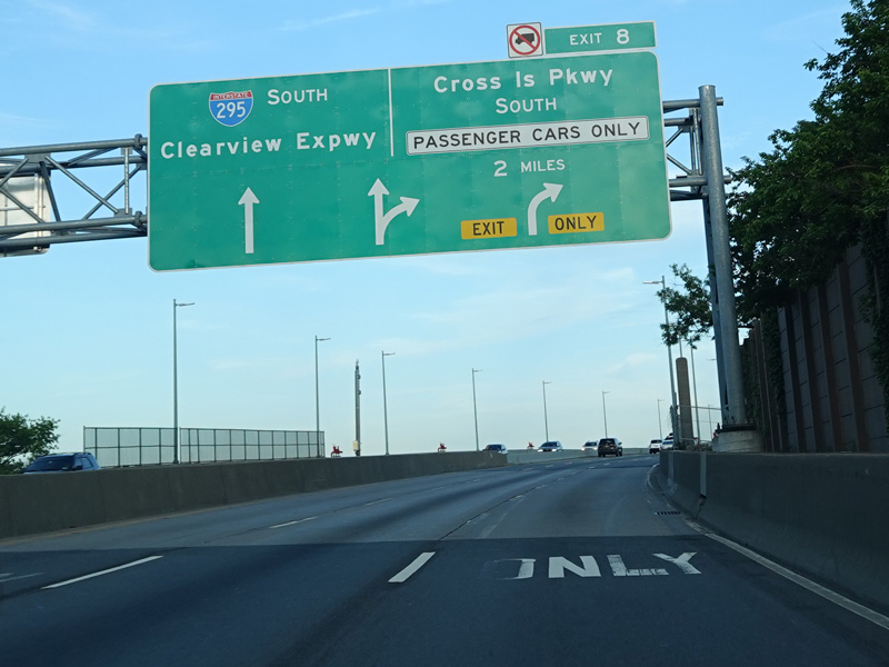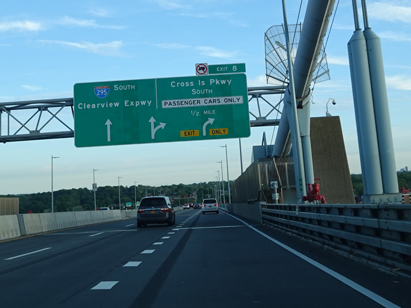 Exit 8 is for the Cross Island Parkway and is located at the end of the bridge. Bear left for the Clearview Expressway (I-295).
