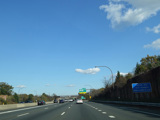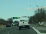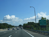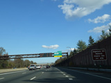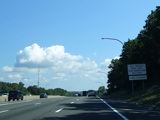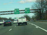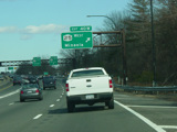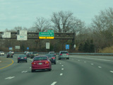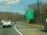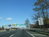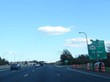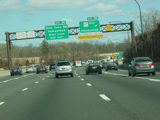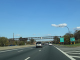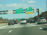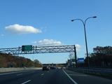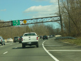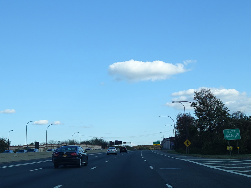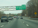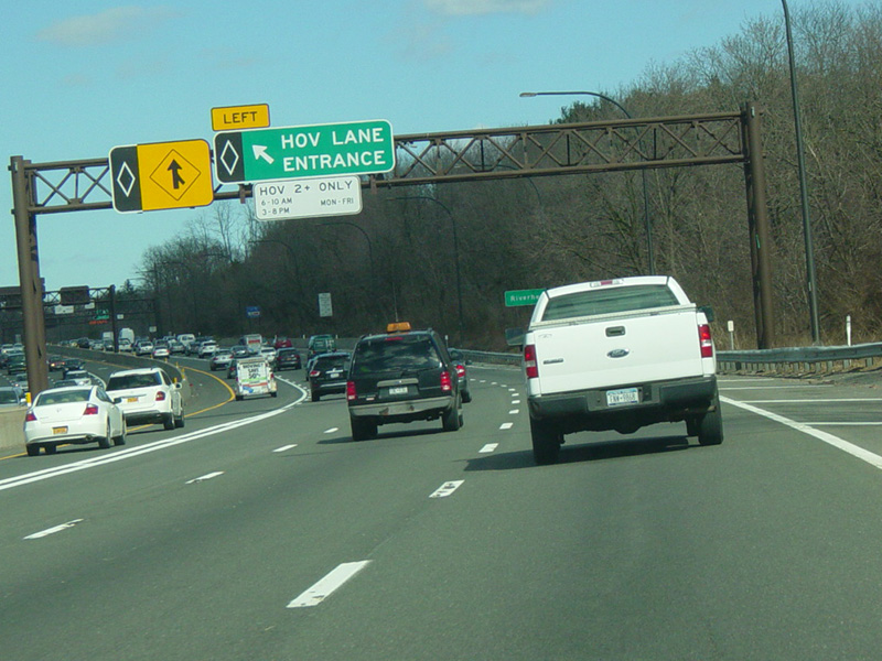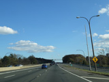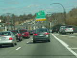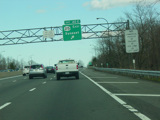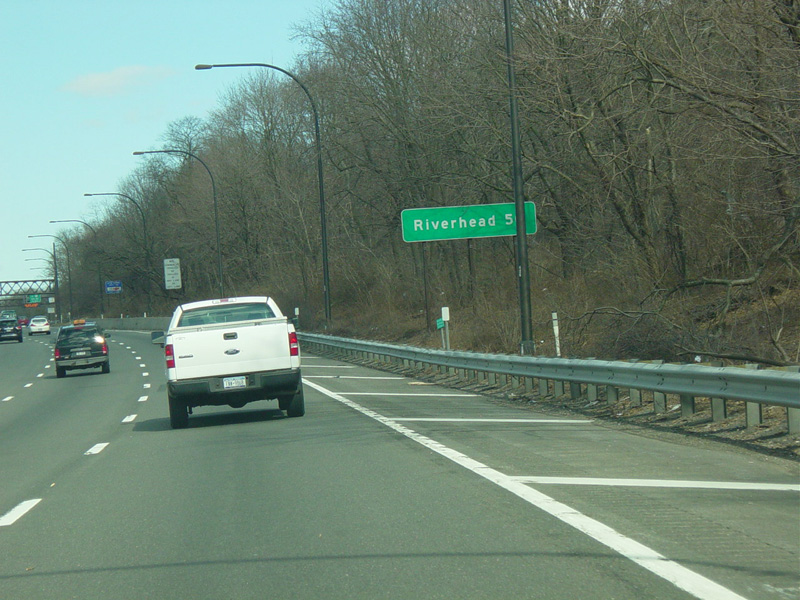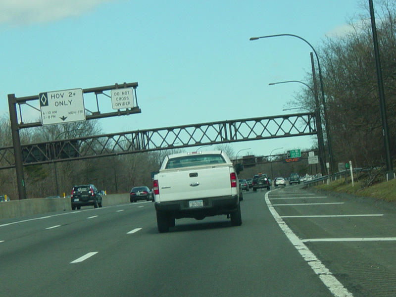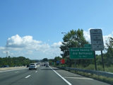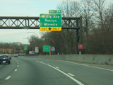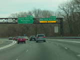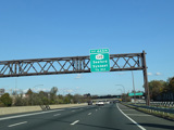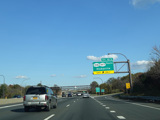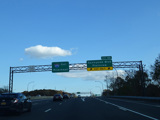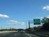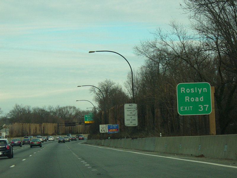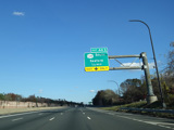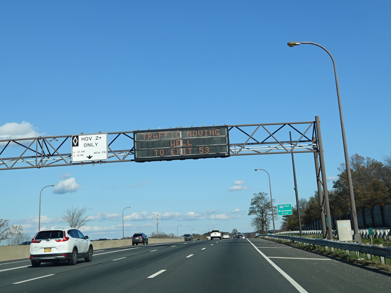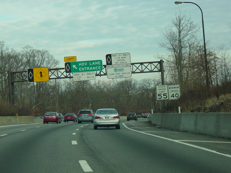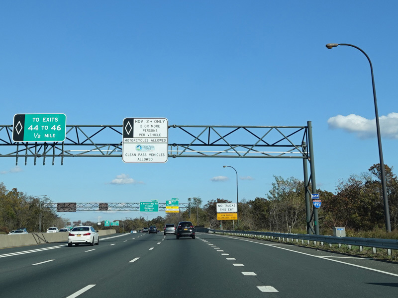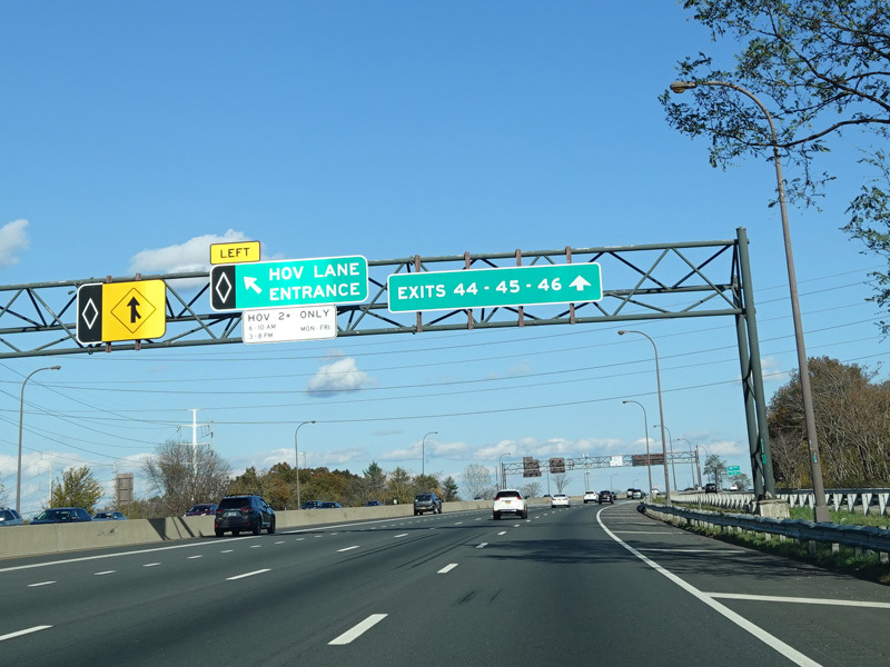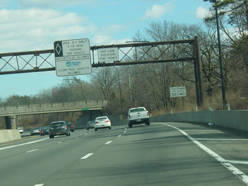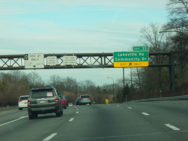 Exit 33 is for Lakeville Road (CR 11) and Community Drive (CR 11A). A High Occupancy Vehicle (HOV) lane for car pools, buses, and energy-efficient Clean Pass vehicles begins here and extends east to exit 64.