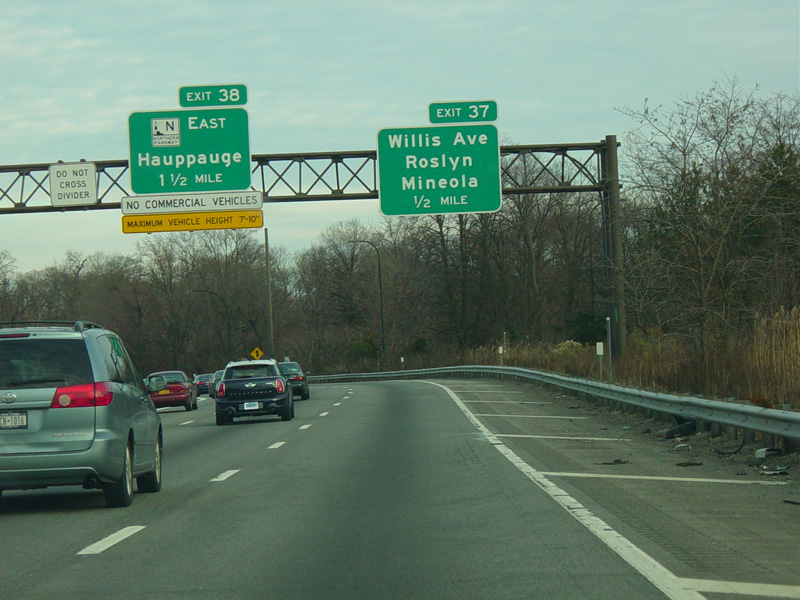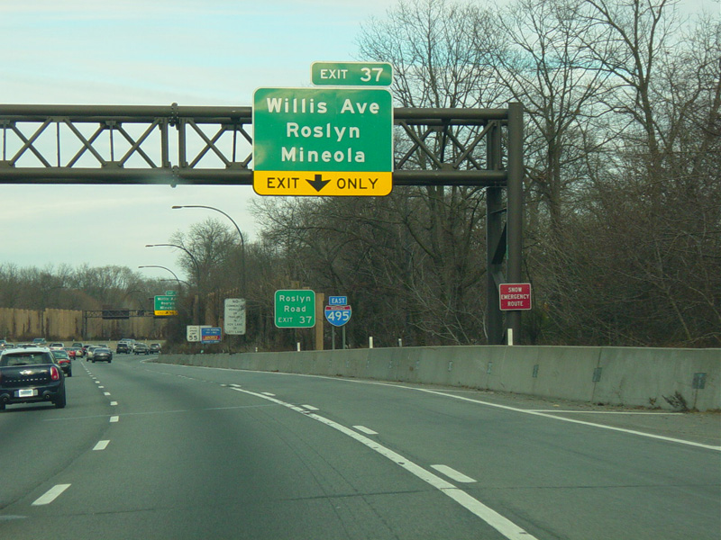 Exit 42 is for the Northern Parkway east. The two highways do not actually cross here, but this exit makes it possible to switch from the Long Island Expressway (I-495) to the Northern Parkway.