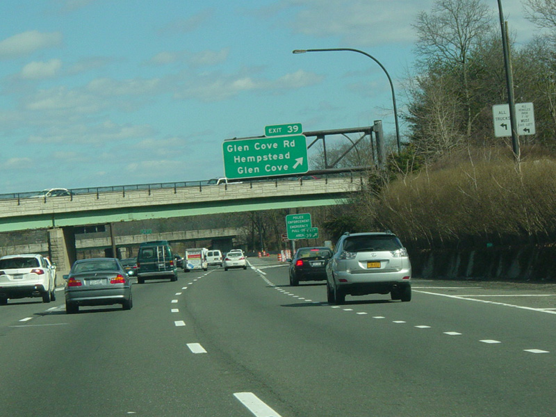 Exit 39 is for Glen Cove Road (CR 1). Immediately after the exit, there is an police enforcement/emergency pull-off area.