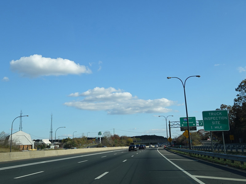 There is a weigh station for trucks between exits 46 and 48. Exit 48 is for Round Swamp Road (CR 110).