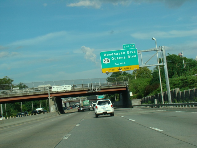 Exit 19 is for Woodhaven Boulevard and Queens Boulevard (NY 25).