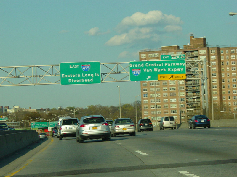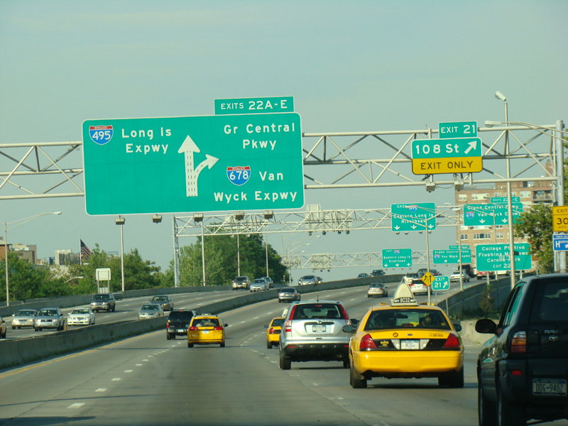 Exits 22A-E are for the Grand Central Parkway and the Van Wyck Expressway (I-678), as well as College Point Boulevard.