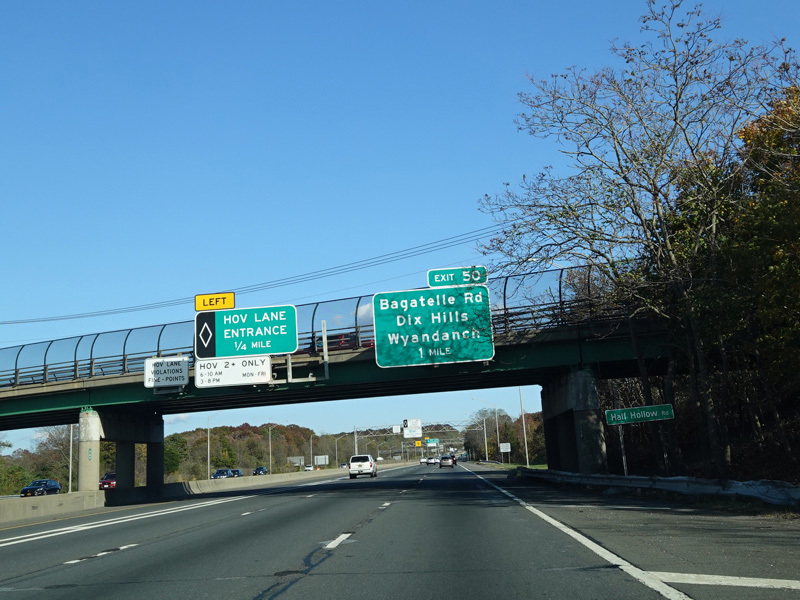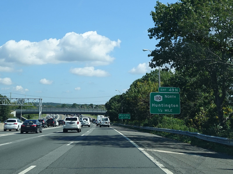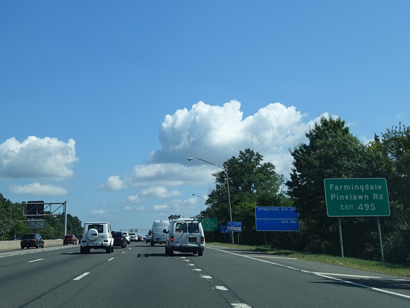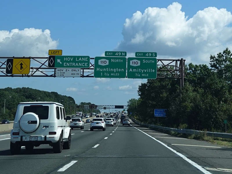 Welcome to Suffolk County! Exits 49S-N are for Broad Hollow Road (NY 110). Exit 49S also provides access to Pinelawn Road (CR 3).