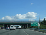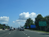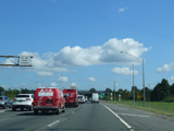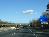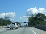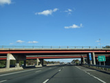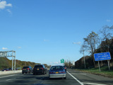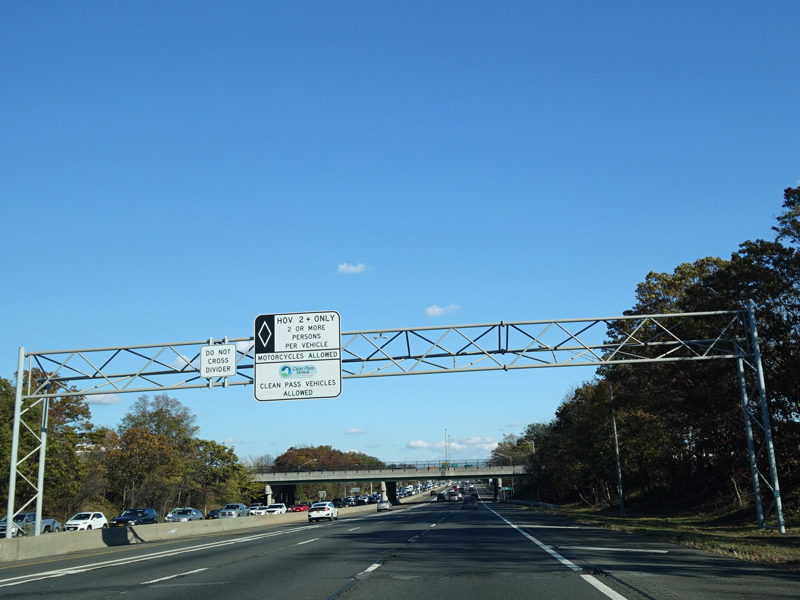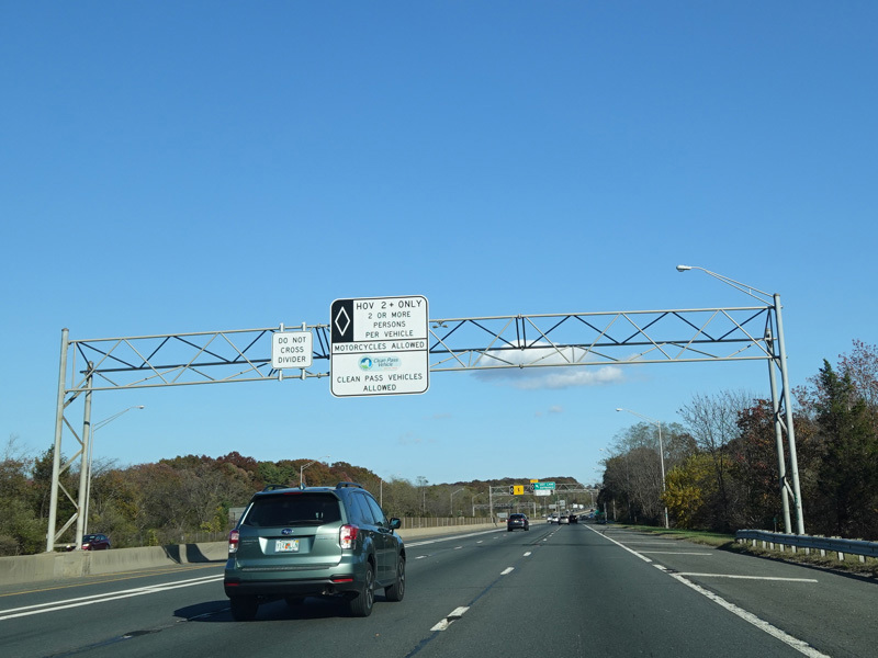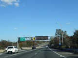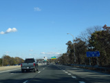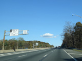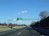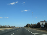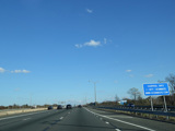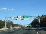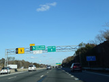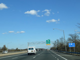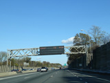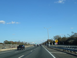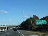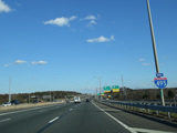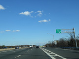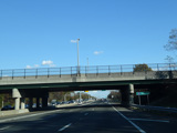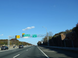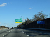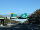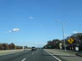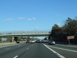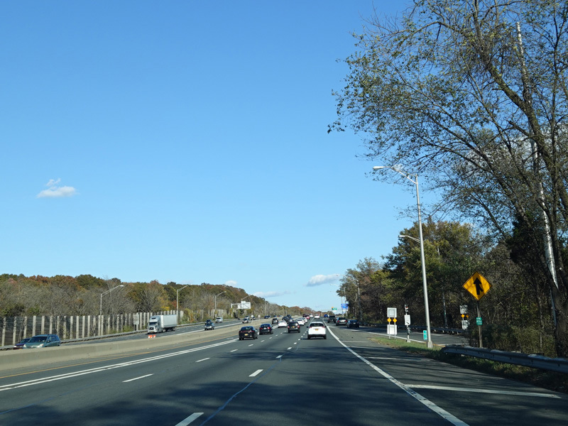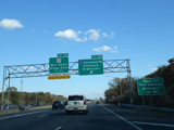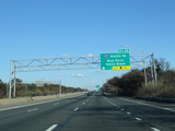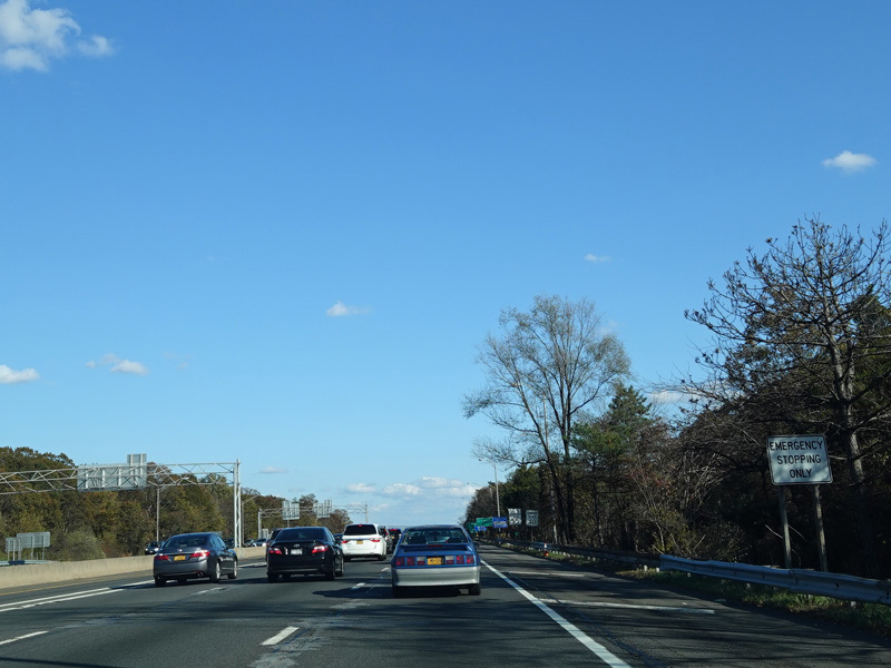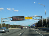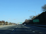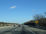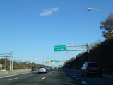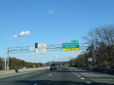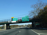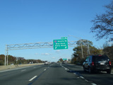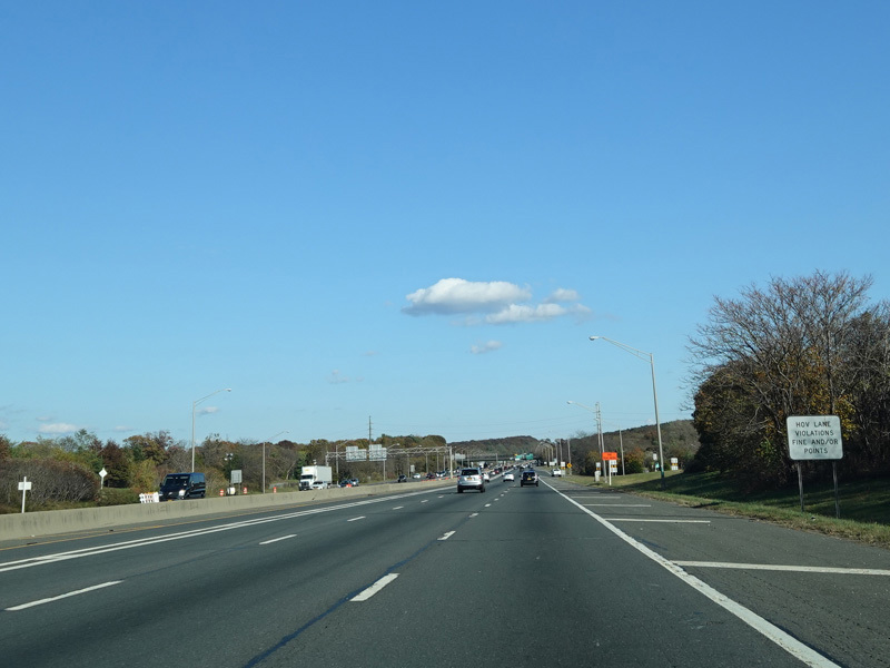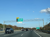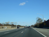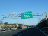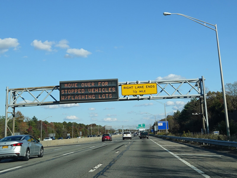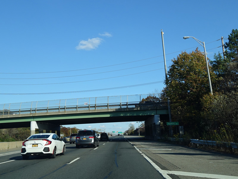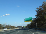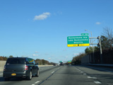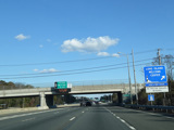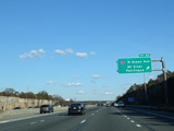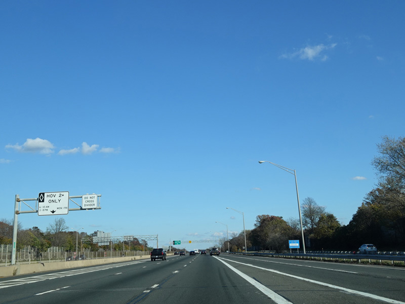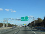 Exit 64 is for NY 112. The HOV lane ends here and the expressway has three lanes in each direction from here until its eastern terminus.