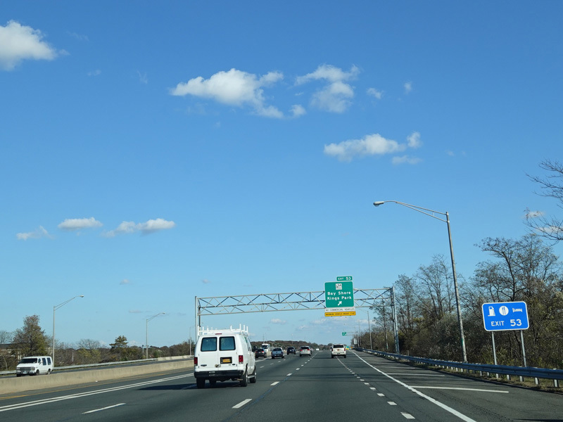 Exit 53 is for the Sagtikos Parkway. It also provides access to Wicks Road (CR 7).