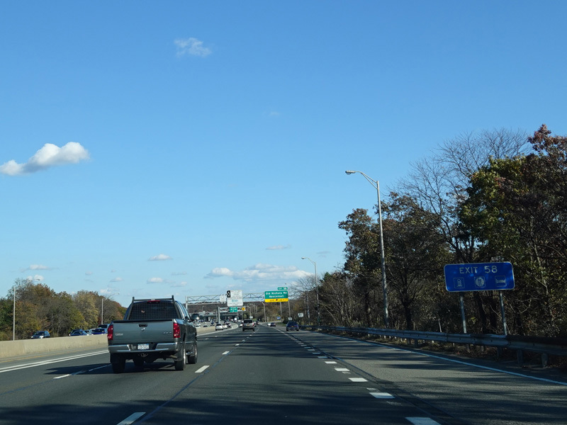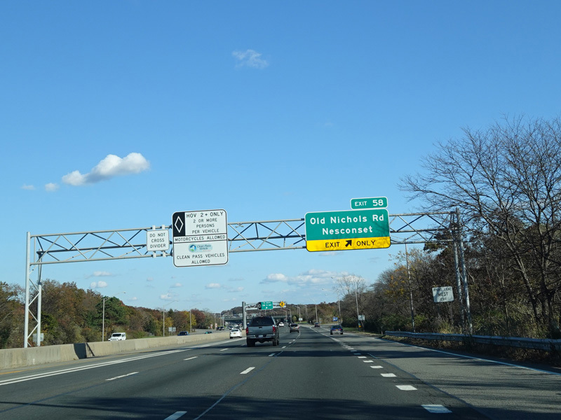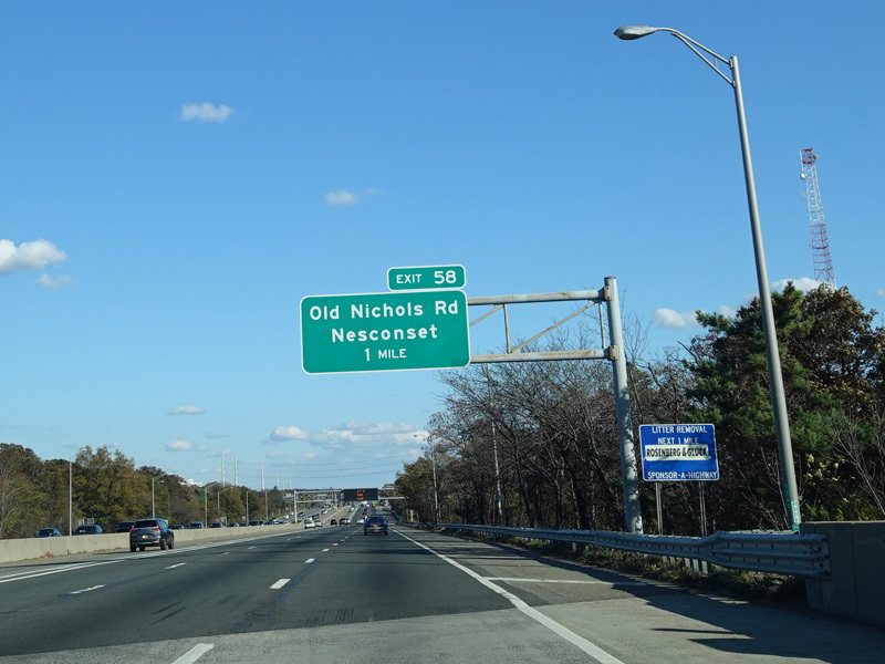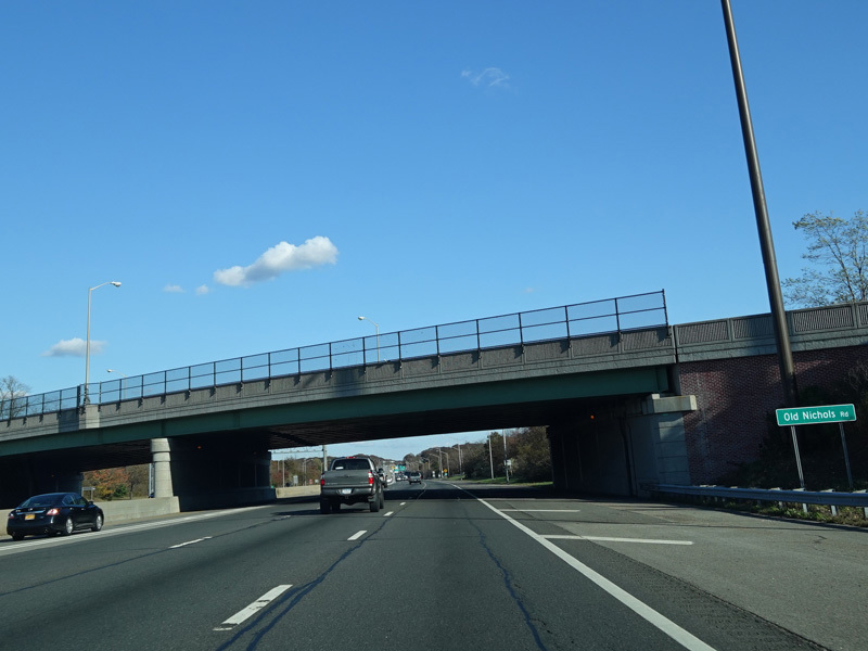 Exit 58 is for Old Nichols Road. This road has no connection to Nicolls Road (CR 97), which is exit 62. (No, there is not a spelling error here; the two roads are pronounced the same but spelled differently.)