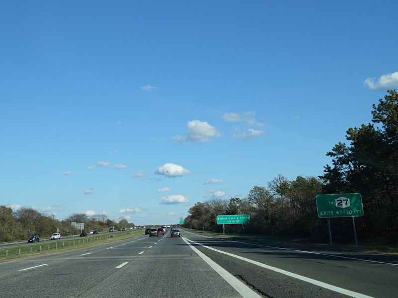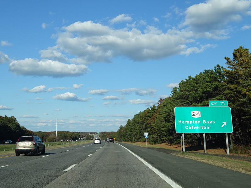 Exit 71 is for Nugent Drive (NY 24/CR 94), which is a slow and indirect route to the South Fork.