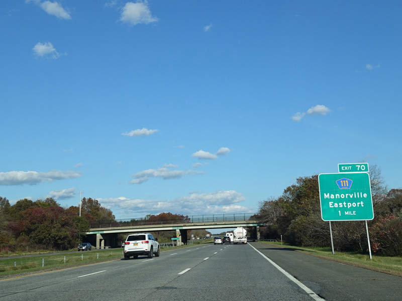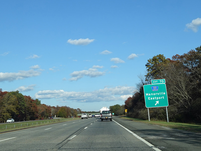 Exit 70 is for Captain Daniel Roe Highway (CR 111). A sign says that this is an "alternate route to Montauk," but it is much quicker and more direct than NY 24.