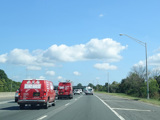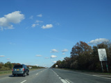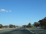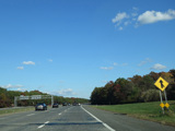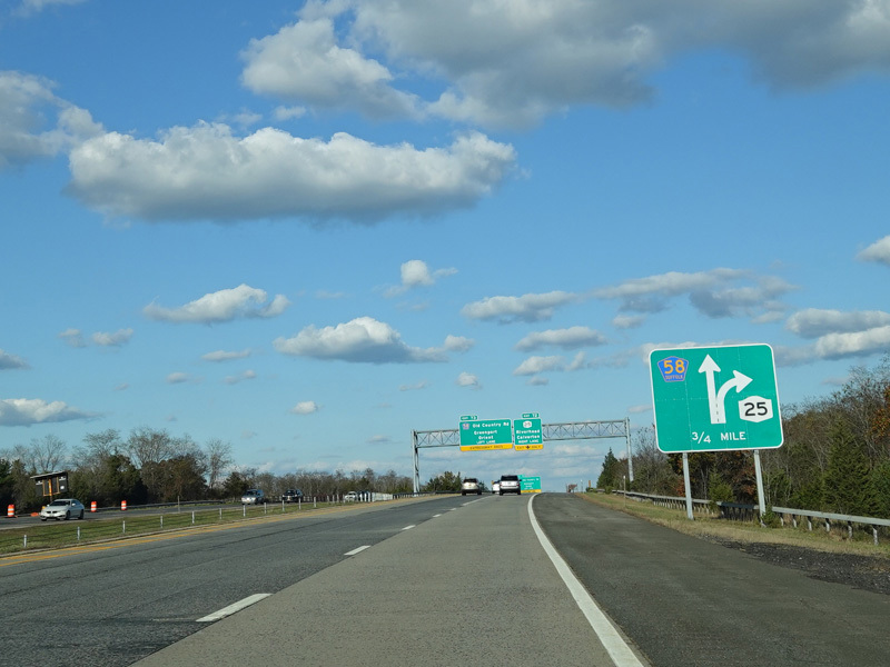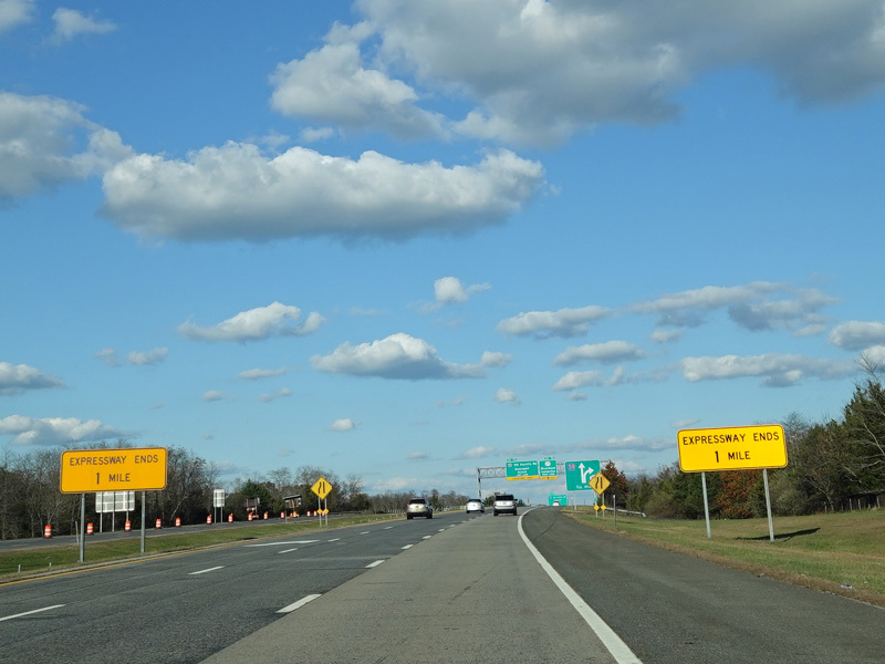 The expressway narrows down to one lane and merges into Old Country Road (CR 58).