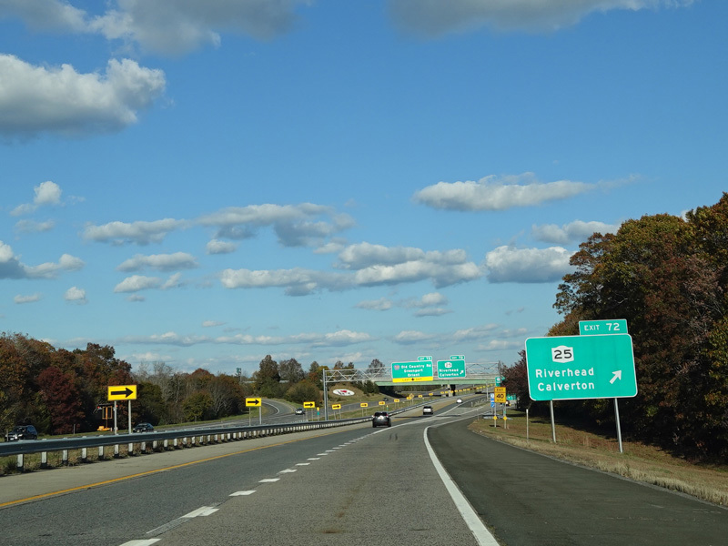 Exit 72 is for NY 25. Exit 73 is for Old Country Road (CR 58), which bypasses Riverhead and is the most direct route to the North Fork.