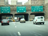 I-495 emerges from the Midtown Tunnel in Manhattan and ends. The roadway splits to provide access to various streets. Use the left lanes for East 34-35 Streets and 2 Avenue. Use the center lanes for East 37 Street. Use the right lanes for 3 Avenue and East 38-41 Streets.