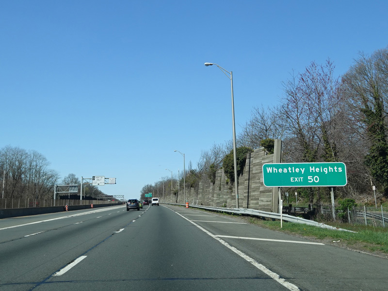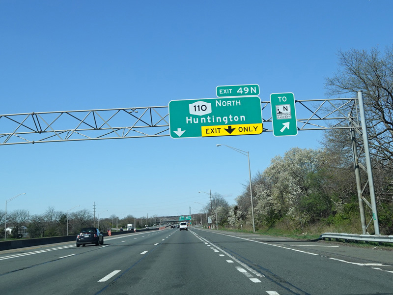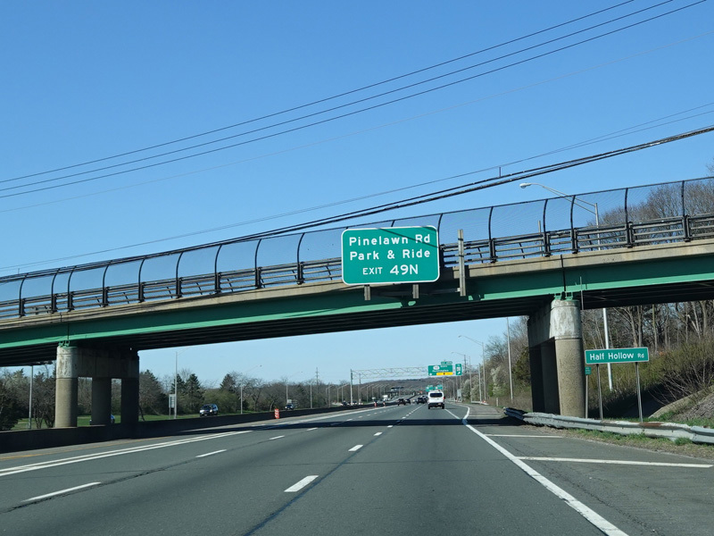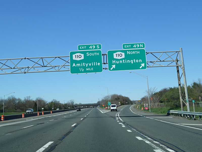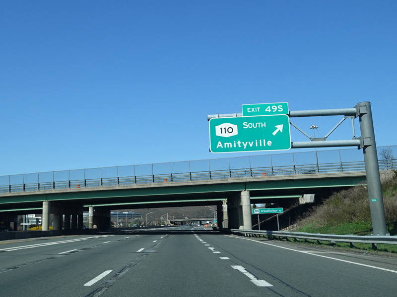 Exits 49N-S are for Broad Hollow Road (NY 110). Exit 49N also provides access to Pinelawn Road (CR 3).