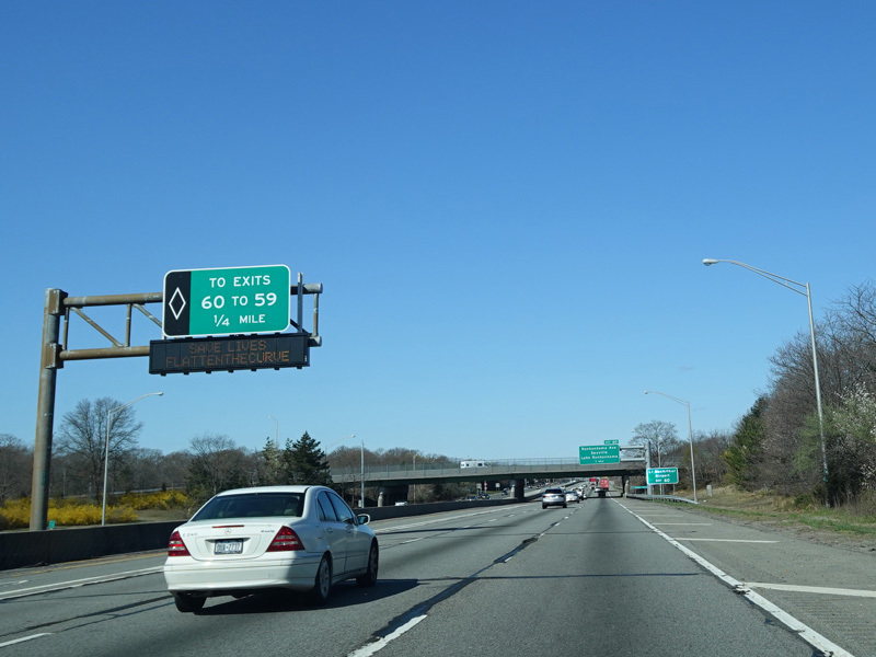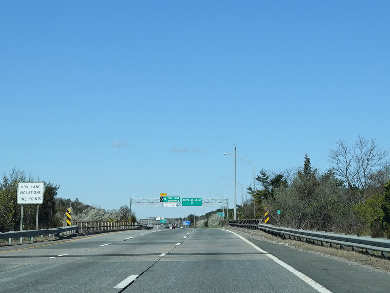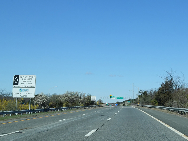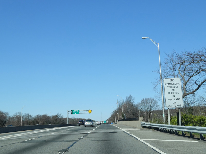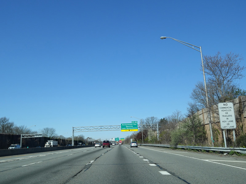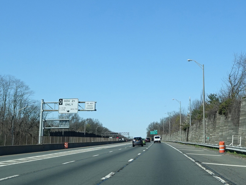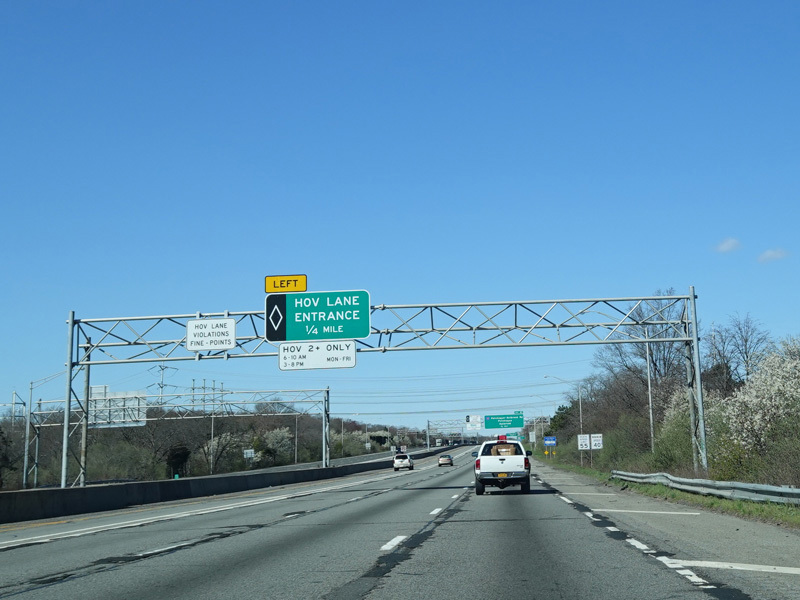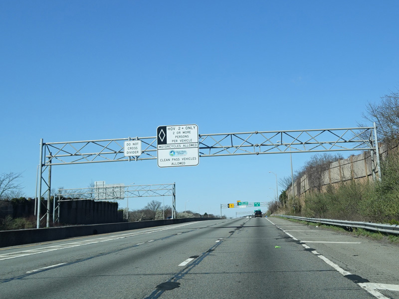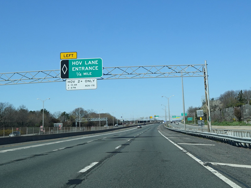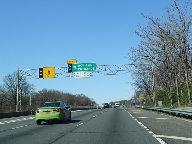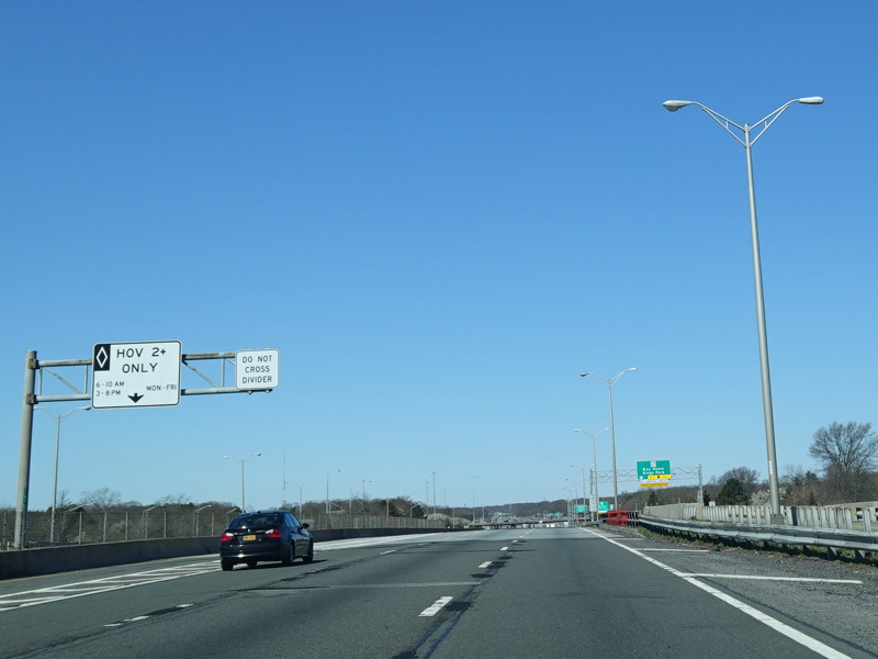 A High Occupancy Vehicle (HOV) lane for car pools, buses, and energy-efficient Clean Pass vehicles begins here and extends west to the Queens-Nassau county line.