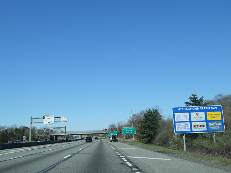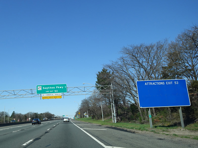 Exit 53 is for the Sagtikos Parkway. It also provides access to Wicks Road (CR 7) and Commack Road (CR 4).