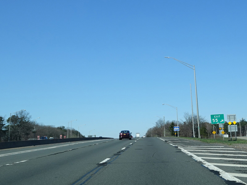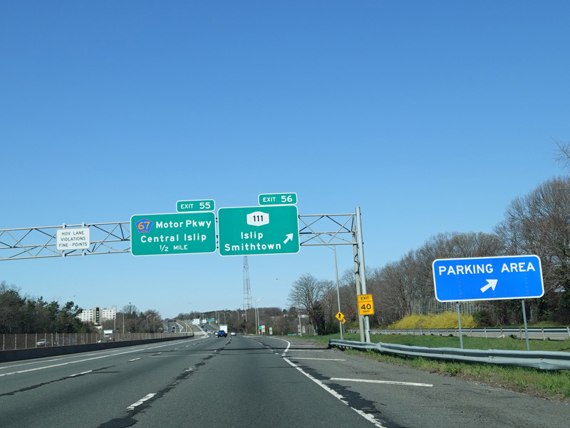 Exit 55 is for the Motor Parkway (CR 67). The Long Island Motor Parkway was the first road to use entrance and exit ramps and overpasses, but now it is just a local street.