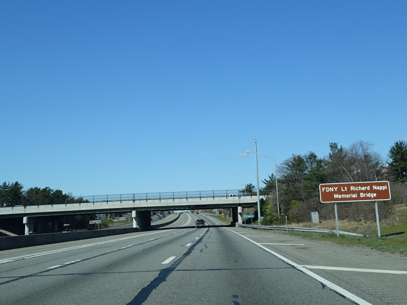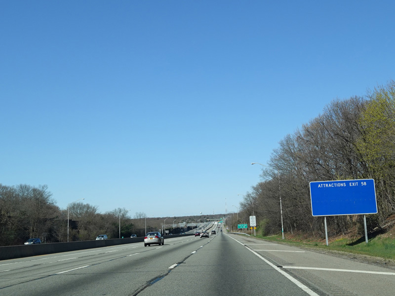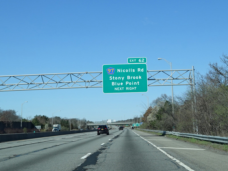 Exit 58 is for Old Nichols Road. This road has no connection to Nicolls Road (CR 97), which is exit 62. (No, there is not a spelling error here; the two roads are pronounced the same but spelled differently.)