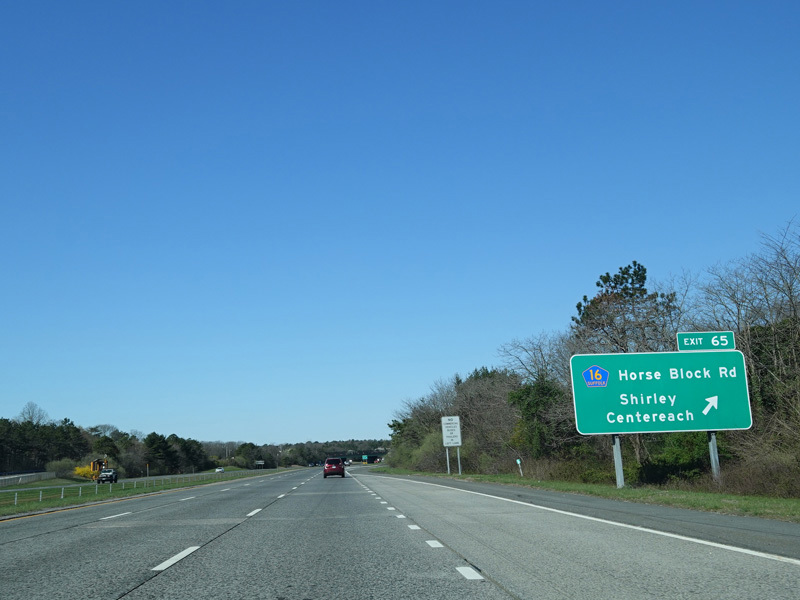 Exit 65 is for Horseblock Road (CR 16).
