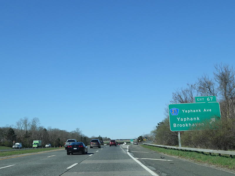 Exit 67 is for Yaphank Avenue (CR 21).