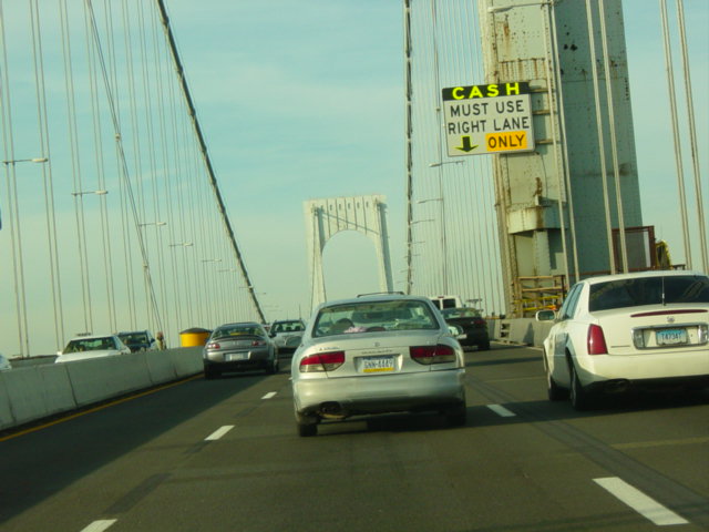 This picture shows the tollbooths for the Whitestone Bridge when the toll was $4.50.
