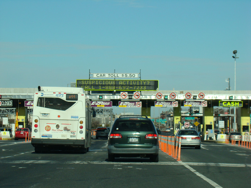 This picture shows the tollbooths for the Whitestone Bridge when the toll was $5.50.