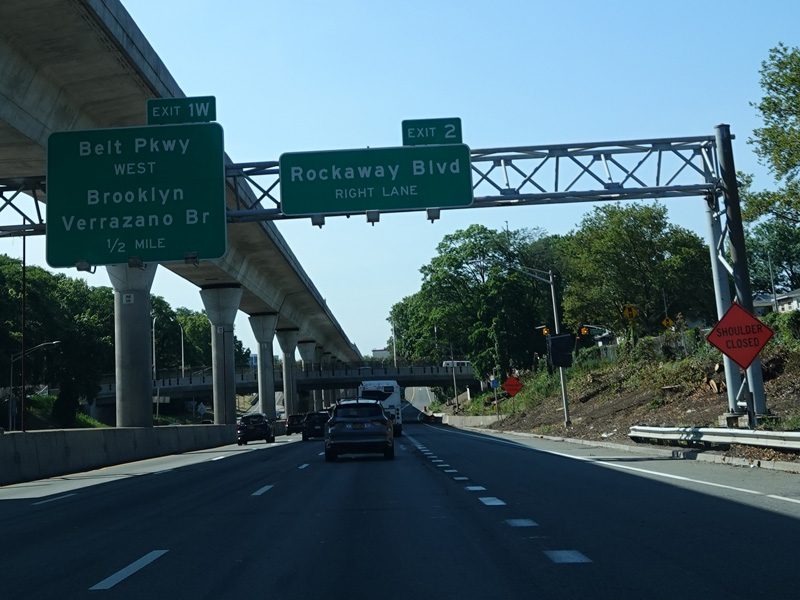 Exits 1W-E are for the Belt Parkway. Exit 1 is for the Nassau Expressway (NY 878) east.