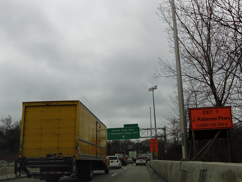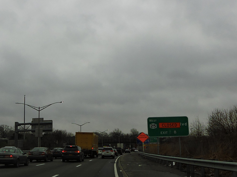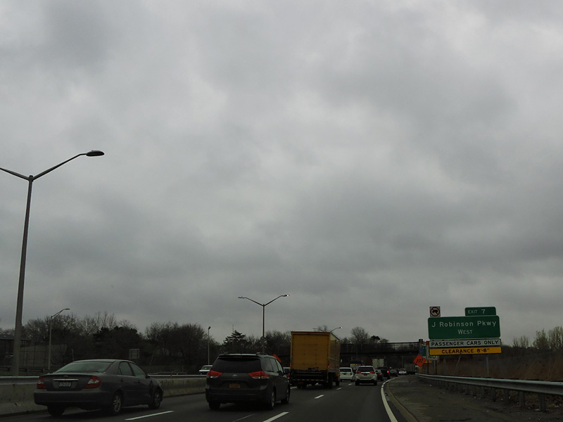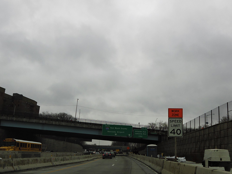 Construction work is in progress in this area to rebuild the Kew Gardens Interchange. Exit 8, which is for Queens Boulevard (NY 25) west, is currently closed. Exit 7 is for Union Turnpike west and the Jackie Robinson Parkway west.