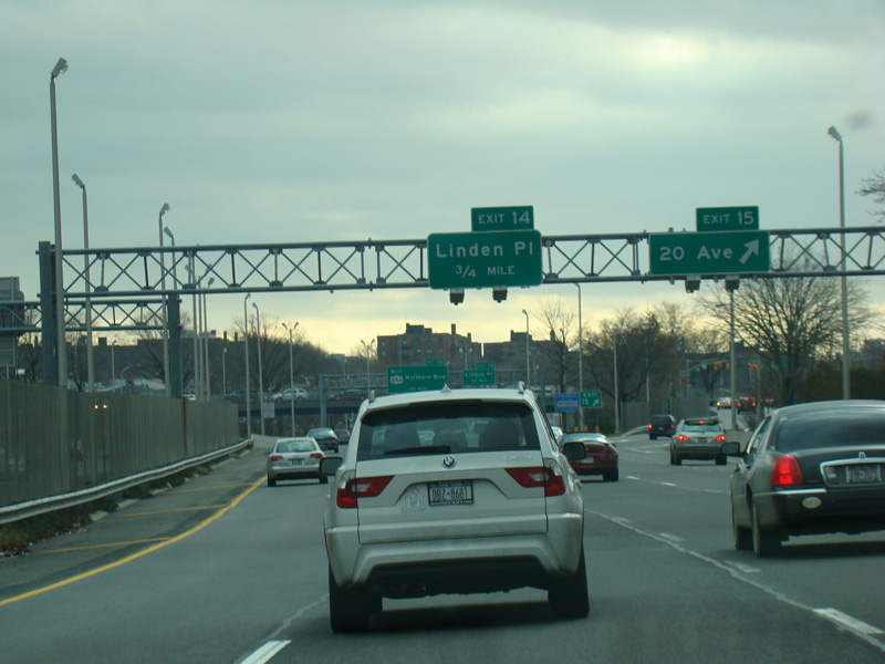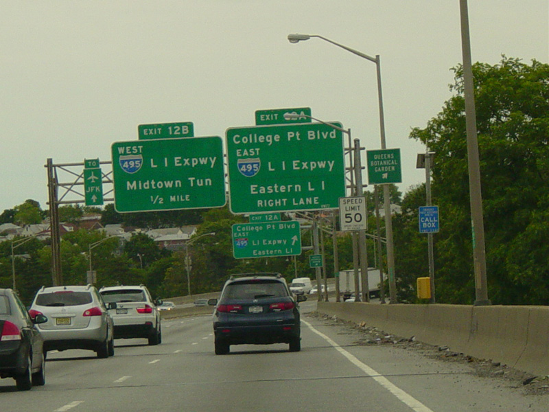 From this point on, I-678 is known as the Van Wyck Expressway. Exits 12A-B are for College Point Boulevard and the Long Island Expressway (I-495).