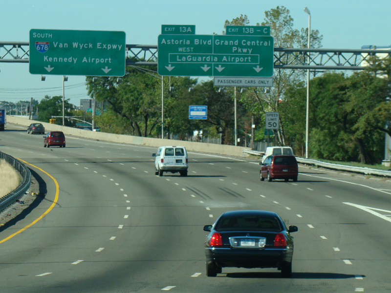 Exit 13A is for Astoria Boulevard west. Exits 13B-C are for the Grand Central Parkway. Exit 13D is for Northern Boulevard (NY 25A) west.