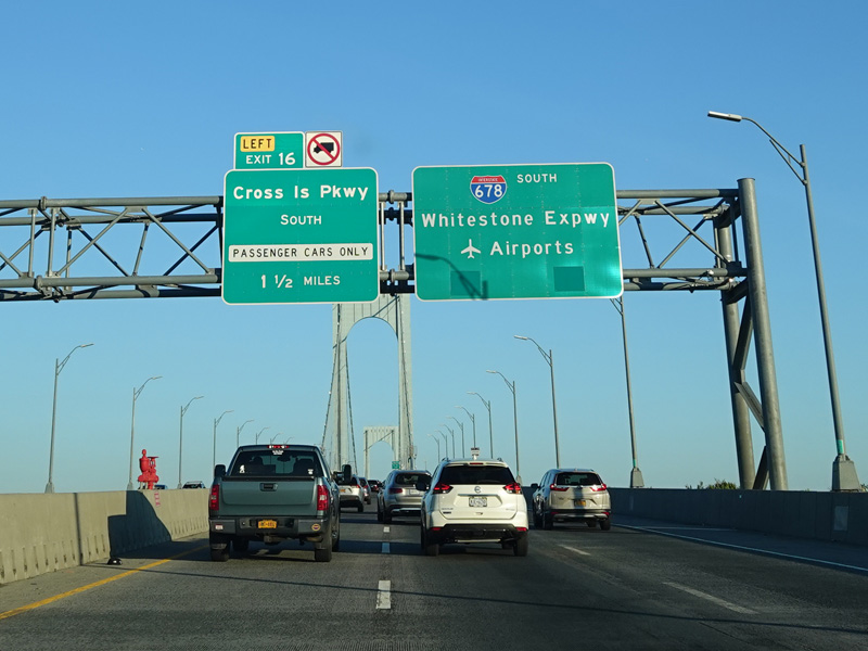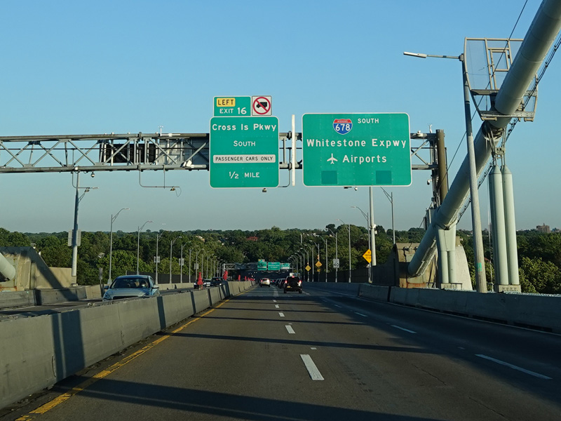 On the Queens side of the bridge, I-678 is called the Whitestone Expressway. Exit 17 is for 14 Avenue. Exit 16 is for the Cross Island Parkway south.