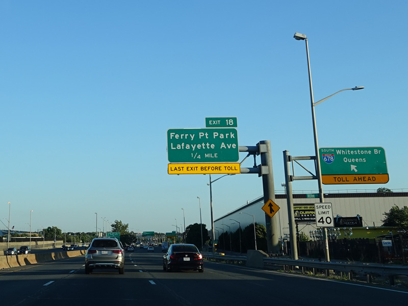 After crossing the Cross Bronx Expressway (I-95), the Hutchinson Parkway becomes I-678. Exit 18 is for Ferry Point Park and Lafayette Avenue.
