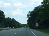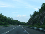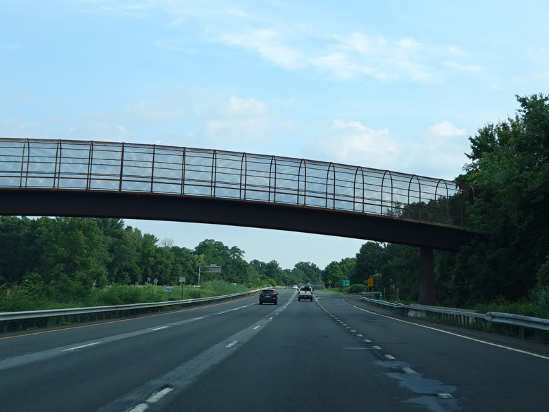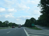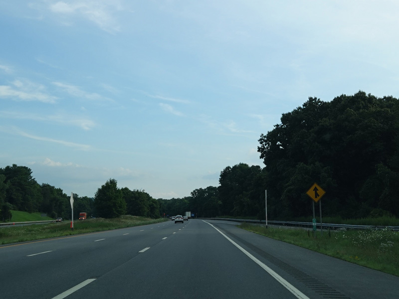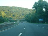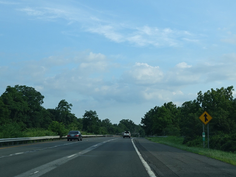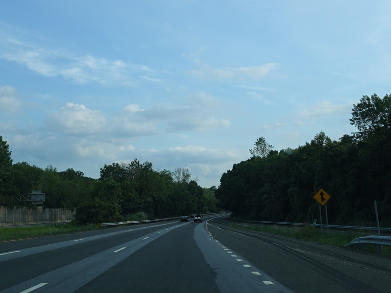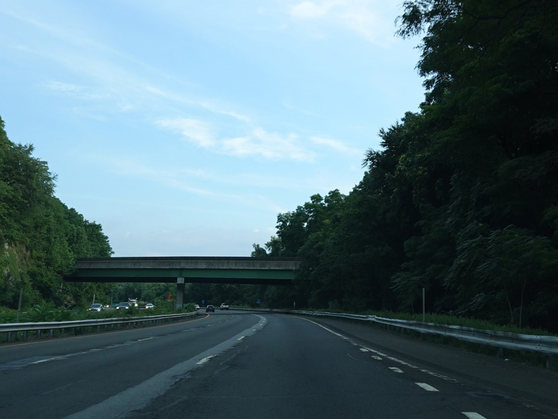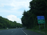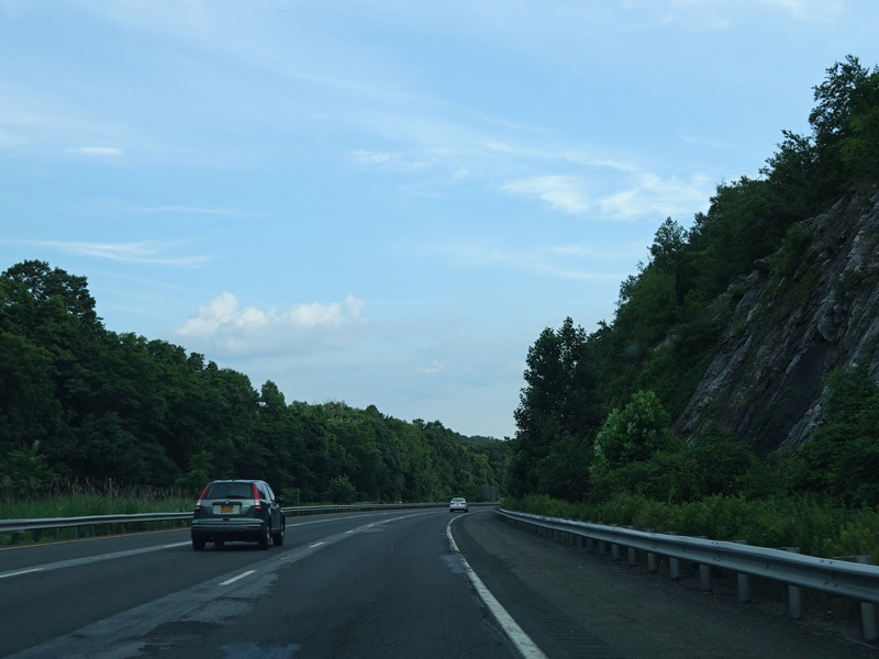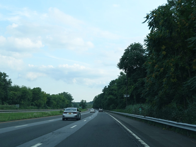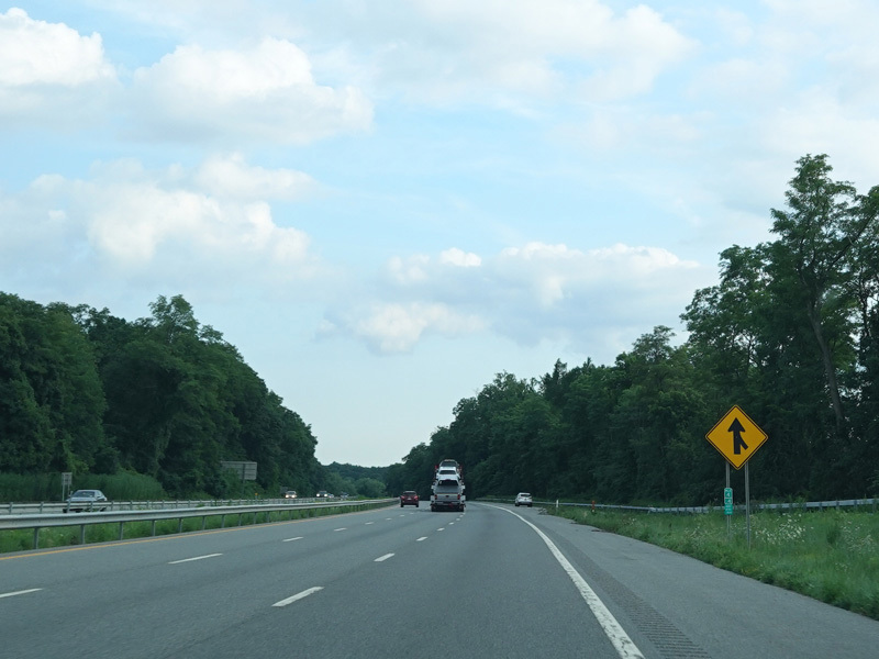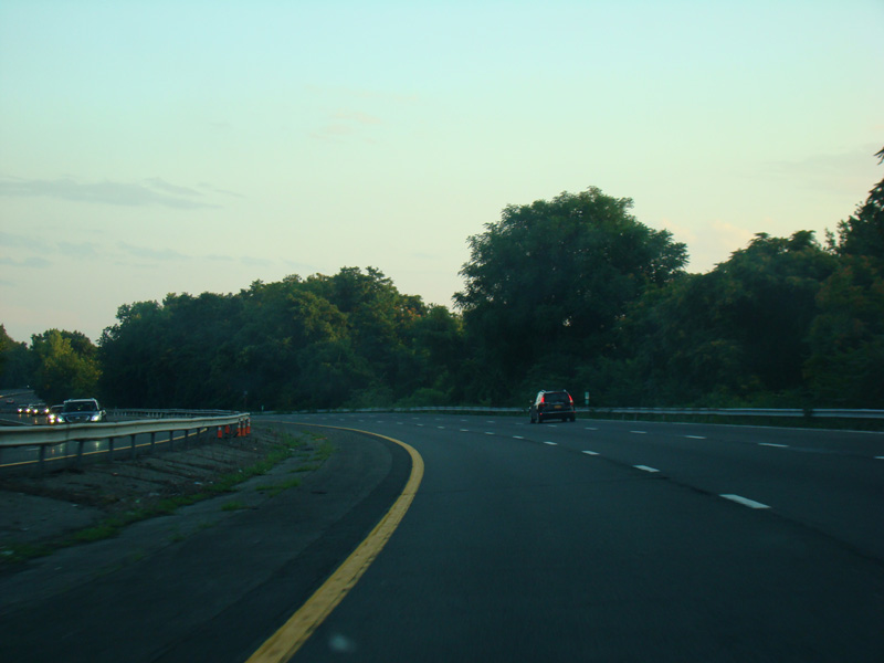 The highway narrows down to a single lane in this direction just south of exits 9W-E until the ramps for I-84 merge in.