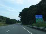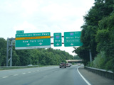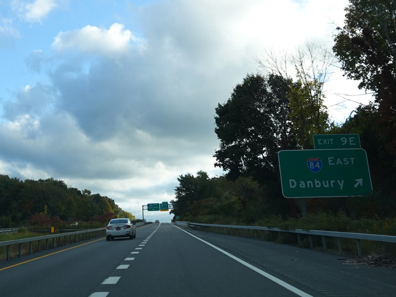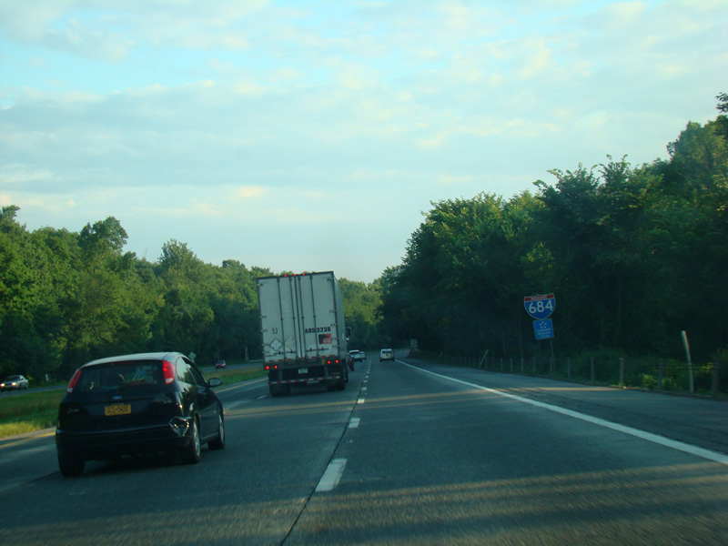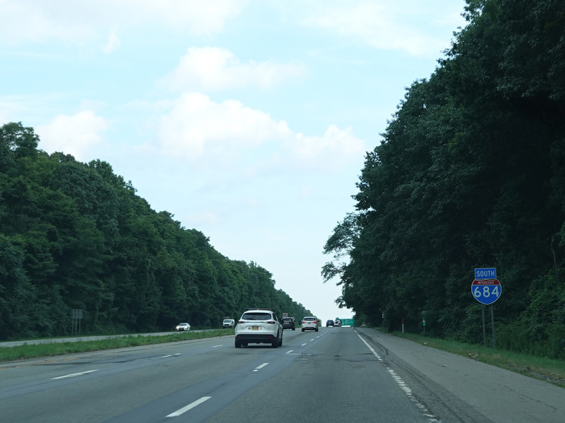 Welcome to Greenwich, Connecticut! I-684 crosses into the state for about a mile before returning to New York. There are no exits in Connecticut, and the road is still maintained by NYSDOT.