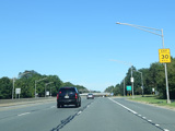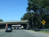 The Throgs Neck Expressway narrows down to two lanes and ends, merging into the Bruckner Expressway (I-95) north.