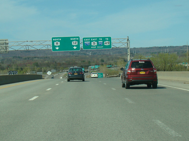 I-790 is a short interstate in Utica that is multiplexed with NY 5 for its entire length. It begins at the point where the North-South Arterial Highway (NY 5/NY 8/NY 12) becomes a freeway. I-790 follows the freeway for one exit to the point where NY 5 splits off from NY 8/NY 12. It follows NY 5 along a pair of roadway along the side of the New York Thruway (I-90) that serve as its service roads. These roadways end at Leland Avenue, where NY 5 turns north and I-790 ends.