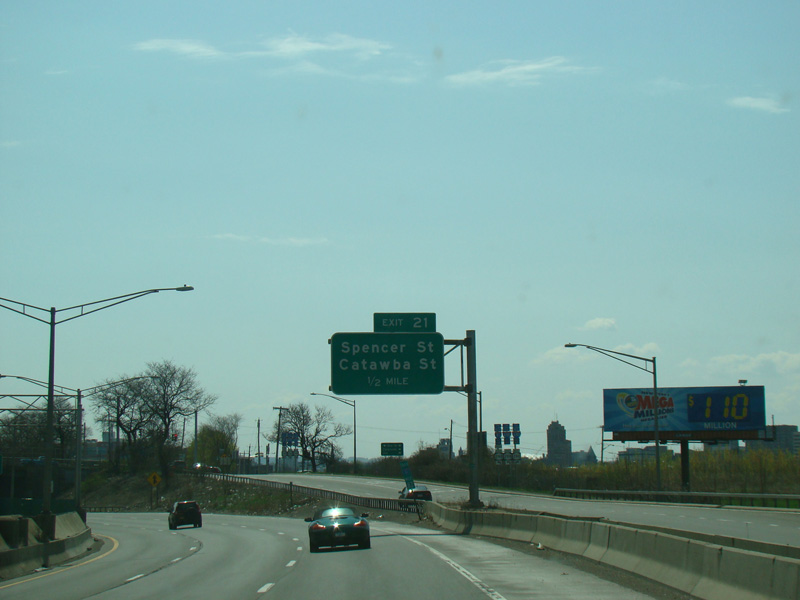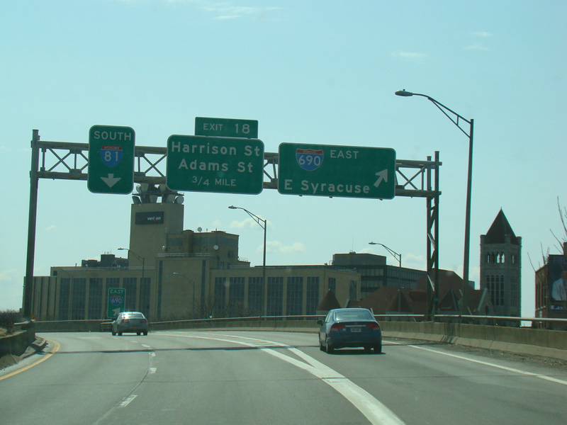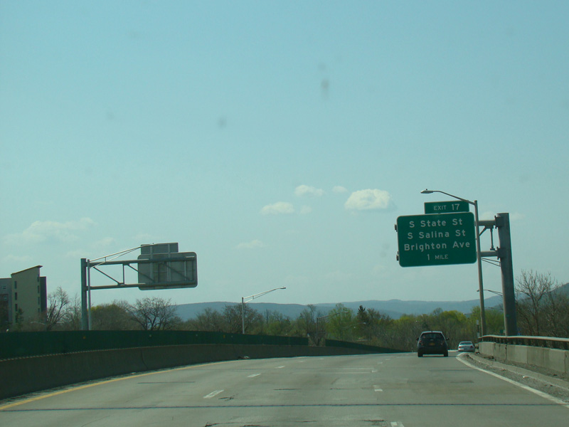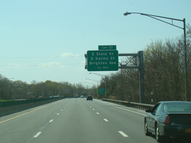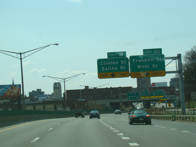 Exit 20 is for Franklin Street and West Street. Exit 19 is for Clinton Street and Salina Street.
