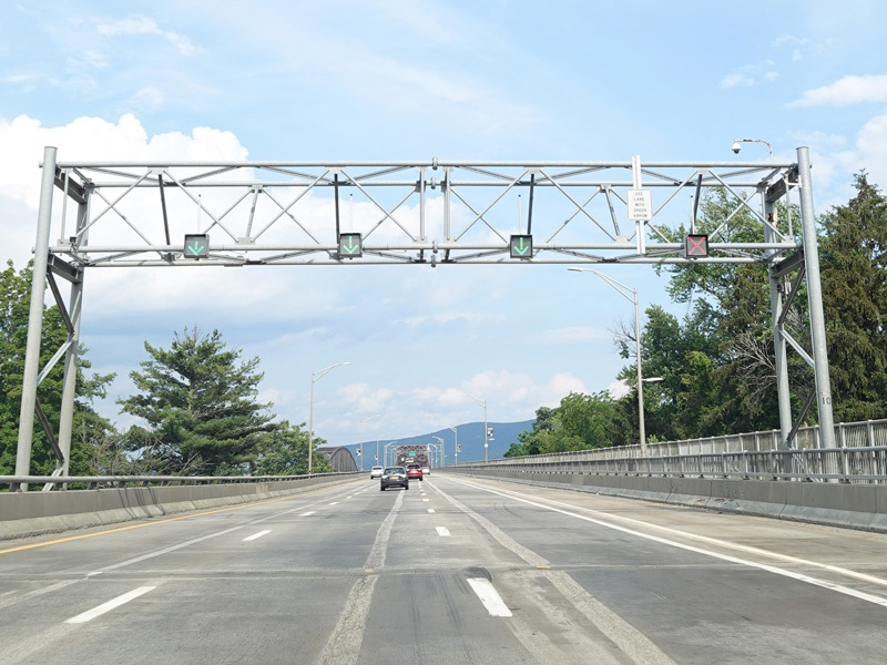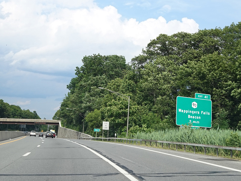 On the other side of the bridge, there is a cashless tolling gantry. Exit 41 is for NY 9D.